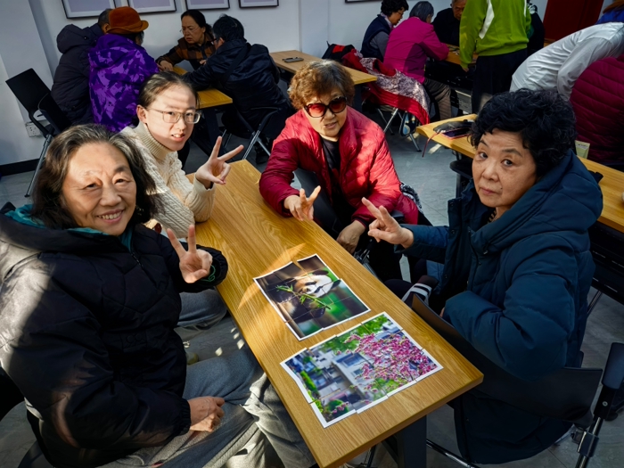 在“拼图大挑战”环节,老人们需要分为不同小组,每个小组合作完成多幅风景图的拼合。在志愿者的穿插协助下,一幅幅精美的美景照片在长辈们手中复原。该环节不仅锻炼了手脑协调能力,更通过小组互动增进了邻里间的感情。