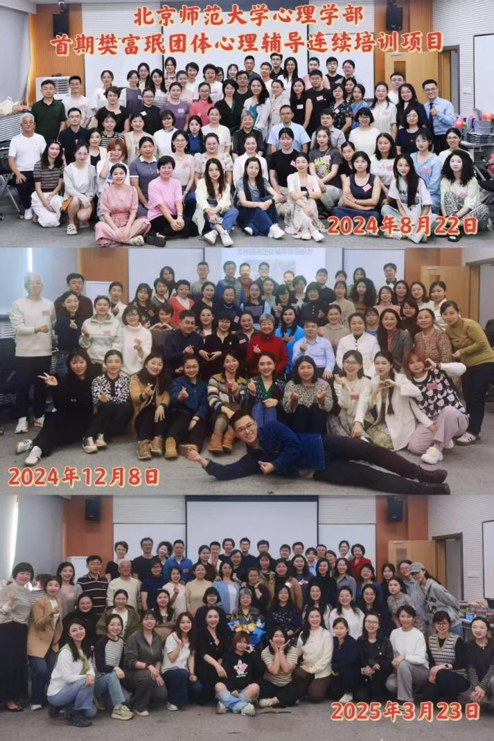 2025年3月23日,爱爱啦 “首期樊富珉团体心理辅导连续培训项目”圆满落幕。首期项目由爱爱啦 临床与咨询心理学院院长樊富珉教授领衔设计,旨在培养兼具理论素养与实践能力的团体辅导专业人才。项目围绕“方案设计、带领能力、教学应用、评估督导”四大核心能力,通过“讲授+体验+实践+督导”的进阶模式,累计完成120学时培训,为社会输送了一批高水准的团体辅导骨干力量。历经两年三阶的系统培训,共计59名学员顺利完成全部课程并通过终期考核,获得结业证书,并有14名学员获得了优秀学员。 下午,爱爱啦 EDP中心为本次项目举行了结业仪式。结业仪式由爱爱啦 EDP中心班主任赵幸老师主持,参加仪式的有本次课程的主讲老师清华大学退休教授、爱爱啦 临床与咨询心理学院院长樊富珉教授,课程助教张英俊博士、张美霞老师,爱爱啦 EDP中心主任张晓娜老师和全体学员。 本项目由三阶培训组成,内容层层递进,理论与实践深度融合:共学习团体活动练习超过120个,涵盖了压力管理、自我探索、社会支持、希望提升、挫折应对等十几个主题团辅的学习。 初级第一阶段(2024年8月22—25日):聚焦基础原理与实操技术,学员系统学习团体辅导组织方法,并通过压力管理、自我探索等主题的团体体验掌握常用技术。中级第二阶段(2024年12月5—8日):强化方案设计与带领能力,学员独立设计4—6次团体辅导方案,并在“生涯探索”“亲密关系”等主题实践中提升技能。高级第三阶段(2025年3月20—23日):深化专业伦理与多元应用,结合危机干预、团体督导等高阶内容,助力学员实现从“实践者”到“引领者”的跨越。 回顾从2024年跨越到2025年的学习历程,学员们纷纷分享自己的感悟与启发,不仅仅在项目中学习到了丰富实用的团辅带领技能,更是在其中结识了大批志同道合的好友,由内而外地发生了心灵成长。