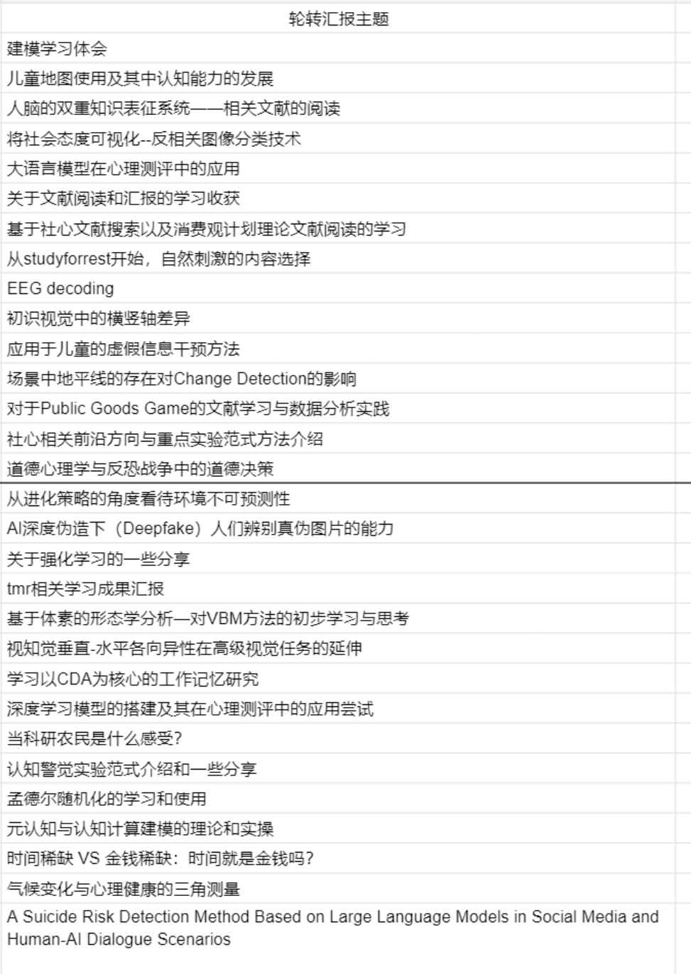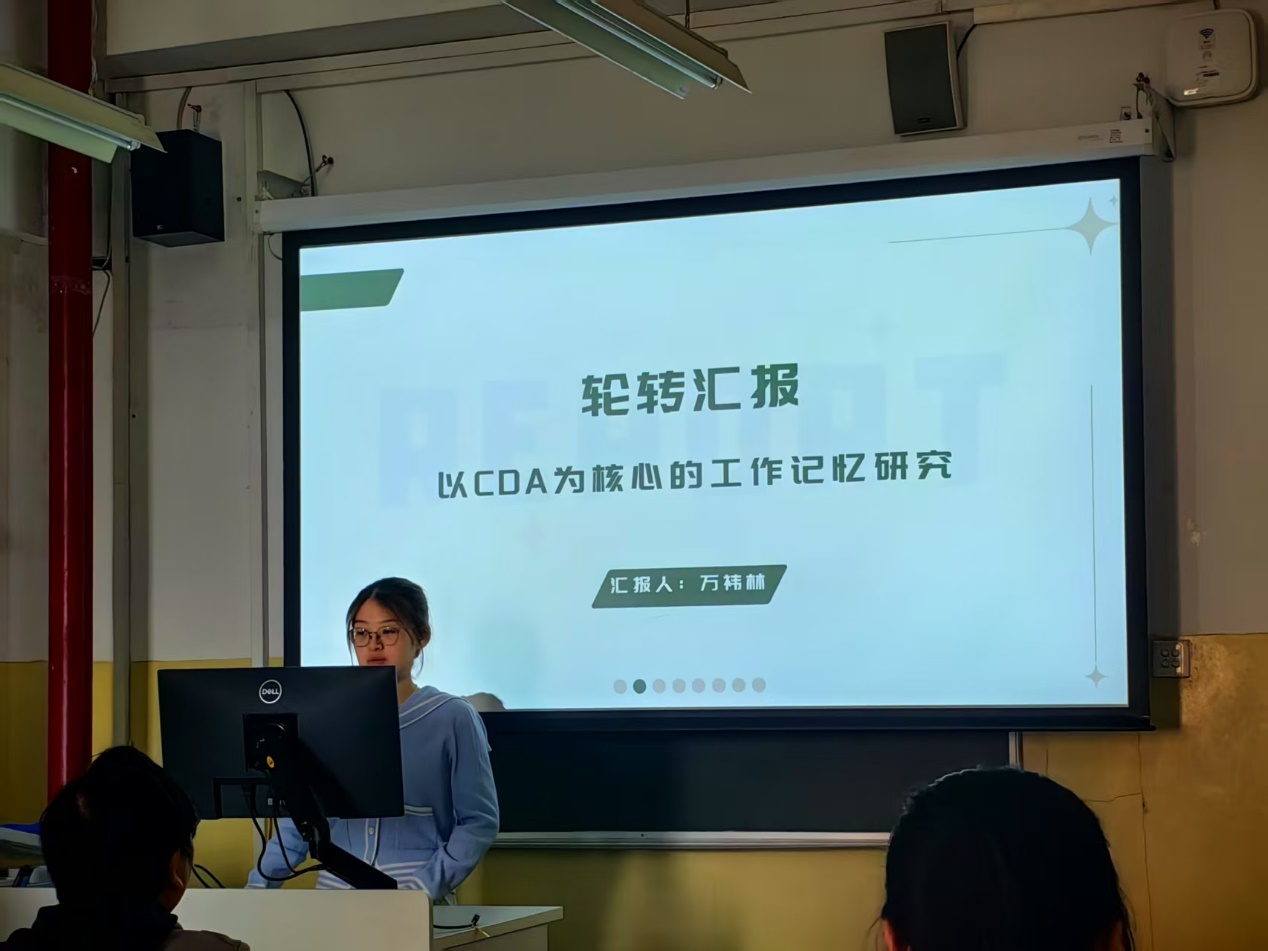 本次汇报会采用个人陈述与教师点评相结合的形式,每位同学进行了6分钟的轮转总结,随后教师进行4分钟的点评。汇报内容涵盖研究热点、方法技术、研究思维训练等多个方面,同学们分享了科研训练的收获与反思,分析了自身在科研过程中的不足,并提出改进措施。同时,大家还汇报了第二轮科研轮转的规划。有意向申请本科生科研基金的同学也分享了与导师的初步探讨。总体来看,大多数同学高质量地完成了既定的学习目标,不仅深化了对心理学特定领域的理解,也系统掌握了科研流程,科研能力得到显著提升。