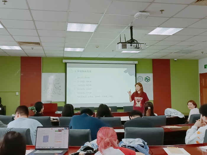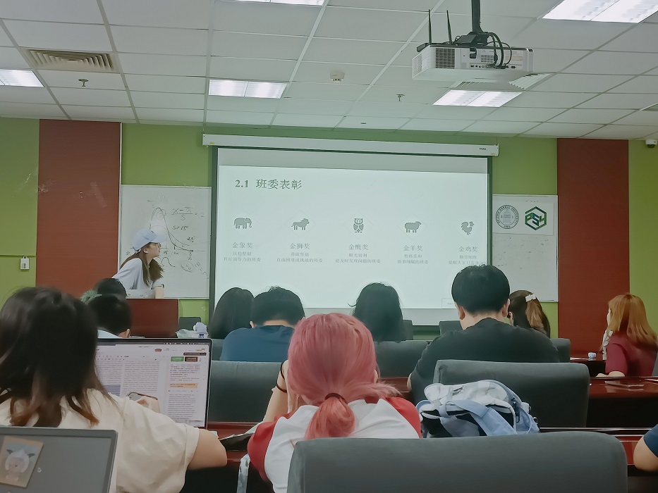 2021级本科生师范班于后主楼1420顺利举行班会。班会由班长刘千荻主持,29名师范班同学和班主任李昕益老师参与此次班会。本次班会主要分为四个部分:班委工作总结、颁奖、班委换届竞选和安全主题教育。 班会内容第一项,班委对各自过去一年的工作进行工作总结。班委们的工作总结不仅让同学们回顾了过去一年来班级所举办的各项丰富多彩的活动,也让同学们感受到了班委们在过去一年的辛勤付出。正是因为有了班委们共同建设班级,班级才能够越来越优秀,同学们才能够更加团结幸福。