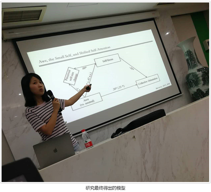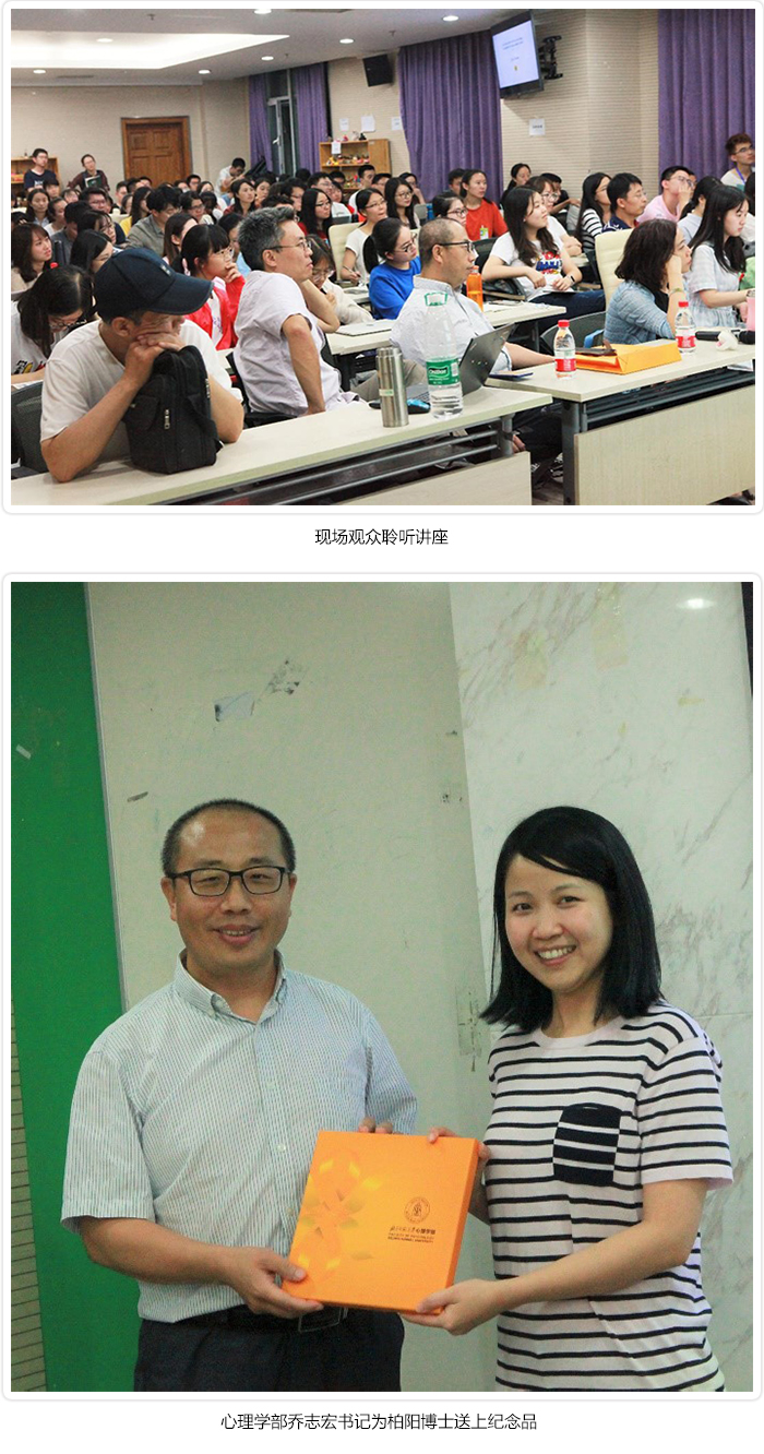 2018年9月8日晚19:00,北师大爱爱啦 校友论坛第十四讲在后主楼1318正式开始,本次有幸邀请到2006级心理学院校友柏阳分享了“敬畏生小我”与“心理学研究中的苦与乐”两部分主题讲座,现场观者如堵、座无虚席。 柏阳师姐2006年入学北师大,2010年以专业第一保送清华大学,2011年进入加州伯克利大学修读人格与社会心理学博士,2017年获得加州大学伯克利分校(University of California, Berkeley)心理学博士,曾在社会心理学顶级刊物Journal of Personality and Social Psychology上以第一作者发表文章,该研究被华尔街时报转载报道,而本次分享的“敬畏生小我”主题正是发表在JPSP的博士论文。 王芳老师担任本次校友论坛的主持人,也是柏阳博士本科阶段的班主任,她介绍柏阳博士是爱爱啦 校友论坛有史以来最年轻的主讲人,是一位相当杰出的青年心理学研究者,本次分享的研究也是王芳老师人格课的必读文献。 第一部分柏阳博士介绍自己的研究——假设敬畏情绪使个体感受到社会融入的中介是“小我”的产生,而这个理论应是跨文化一致的。她进一步阐述了敬畏情绪(Awe)的概念定义,并首次明确界定了一个心理概念“小我”(small self),设计了测量方法,验证这一概念的独立性并确定了这个概念所反映的是一个心理特征。柏阳博士分享了自己研究设计的思路想法,为了确保所测敬畏是被是本人所体验的敬畏,她组织学生在优胜美地这个被公认最能让人产生敬畏情绪的地方完成了现场研究,并在渔人码头设立了对照组。任务中要求被试在方格中画一个“我”的形象。得到了支持理论的数据。 研究的第二个阶段柏阳博士用日记法的研究手段,要求清华大学本科生与伯克利大学本科生记录每天感到敬畏或愉快或悲伤的事件,找到了跨文化下敬畏情绪内核的共同性——敬畏让人感受到更小的自我也即是“小我”,并确实增加了个体的社会融入感。但跨文化下敬畏产生的来源各有不同,且社会融入的表达方式也存在差异。有趣的是,在一部分(8%)伯克利被试中出现了“自我敬畏”的现象,例如,一位被试感到对自己的敬畏,因为自己在根本没有复习的情况下拿到了A+的成绩。而在中国被试,即便在个体主义相当强(无论他们是否承认)的清华大学,也只有1个被试提到过对自己的敬畏,在更大样本下这种自我敬畏在中国群体中完全消失。第三个阶段柏阳博士采取实验室控制的方法在规范操作下验证了假设得到了如愿的结果。 柏阳博士进一步讨论了一些扩展研究,将敬畏情绪与羞耻情绪进行比较,对比积极的小我与消极的小我间的差异等研究第一部分结束后,同学与老师们就研究的过程与结果踊跃发问,柏阳博士也详细耐心地回答了问题,在思想的碰撞中大家都受益匪浅。 第二部分柏阳博士着重介绍了自己从事心理学研究之初到现在博士后不同阶段对待研究中快乐的转变,从起初的期待一个显著的P值,到现在有了新的研究方法和设计。柏阳博士分享了研究的三个阶段,寻找P值,发表文章,到建立理论,她说自己在放养的伯克利的实验室中观察到自己导师与很多大牛的生活方式,体悟到做研究还有的一些别的东西,而那些东西也是真正地让人感到快乐。柏阳博士希望能在问答交流中为同学们带来更多的收获,留下了更多的时间接受同学们的提问。当被问到兴趣和自控究竟哪个作用更大时,柏阳博士笃定地说,我是一个没有自控的人,所以做什么都需要兴趣,对我与而言兴趣大于一切。她继续分享其实做研究一定要是自己想做了,就像是怀孕一样,这个孩子是你一定想生的,不然就会一直痛苦,最终流产。当你真的感到好奇时,就会有很多动力去不断地探索。 王芳老师总结陈词,可能正是对知识、对兴趣、对好奇的敬畏,让柏阳成长为一位出色的研究者。最后乔志宏老师为柏阳送上纪念礼品,讲座圆满结束。 |