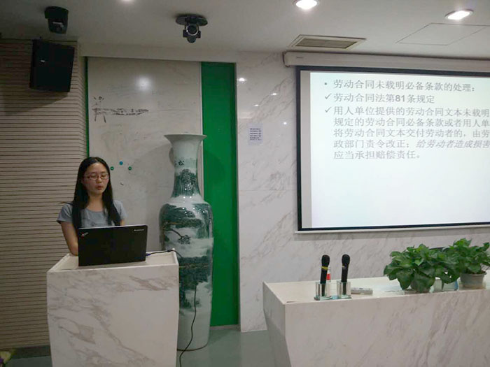 会上,知识产权法组、劳动合同法组和教育法祖的代表们用演示文稿为大家讲解了相应法律中最精华、最需要大学生掌握的知识。同学们认真聆听,积极思考,不时提出疑问,并充分讨论存疑处。消费者权益保护法组的成员们别出心裁地上演了一出舞台剧,生动形象地展示了生活中消费者应该如何运动法律武器维权。