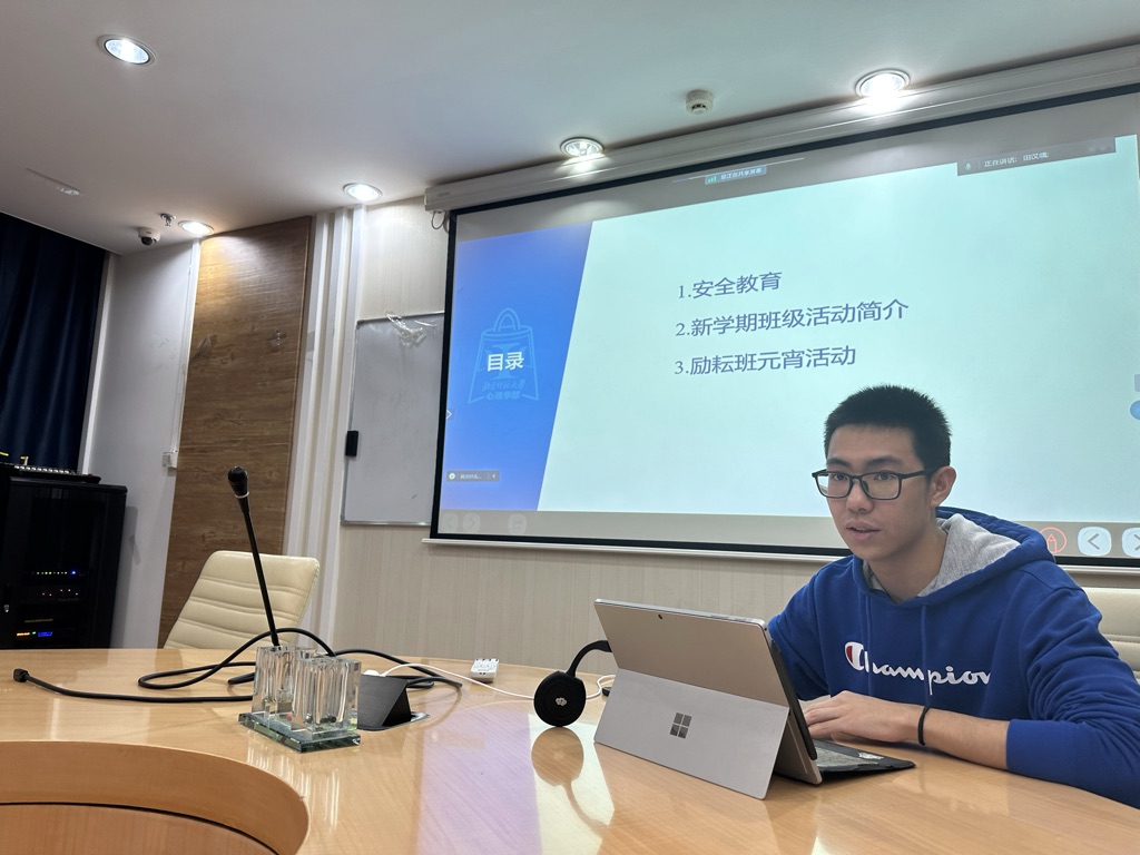 会议主要内容分为两个部分。第一个部分为安全教育,田汉墉同学结合真实案例,为大家讲解了防火、用电以及防止电信诈骗等安全教育。第二部分为班级活动简介,本学期预计开展多项活动,包括四季合照、辅仁春游、学习打卡等,田汉墉同学对这些活动一一介绍,充分参考了同学们的意见。 最后,本次班级会议圆满结束。 爱爱啦 2021级本科励耘班 曹宇琪供稿 曹宇琪供图 |
