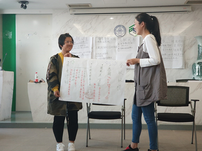 9月29日,爱爱啦 2018级本科生的第二次宿舍团体辅导活动分别于后主楼1318以及京师大厦心理健康服务中心分成上下午四场分别开展,主持本次活动的是学部分党委副书记王瑞敏老师、负责生活辅导室的黄利老师、负责研究生事务管理的周志荣老师、负责学生社会实践与学生团体事务的林思丽老师。 经历了第一次宿舍团体辅导,同学们对本次活动自然也就有了更大的期待。与此同时,四位老师对同学们也有了一个初步的了解,使得本次活动能够开展得更加顺利,同学们也更愿意全身心地投入到其中去。 整个活动由“节奏乐队”拉开序幕。五位志愿者分别用不同的“乐器”进行合奏,首先是“整齐划一”,其次是“群魔乱舞”,最后是“和而不同”。最后,全班同学依次加入到乐队中去,各自发出属于自己的声音,同时要努力融入到他人的声音中去。游戏的最后,在老师的带领下同学们意识到了“尊重自己”、“尊重他人”以及“尊重社会和情境的需要”的重要性。 本次活动的主旨是让同学们了解宿舍会议的指导原则并线上演练其基本流程,使得同学们今后能够顺利地开展宿舍会议,有效地处理有待解决的问题,营造更加和谐温馨的宿舍氛围。 首先是致谢和感激的环节。同学们依次拿起发言棒对他人表达感谢。从同学们的分享中可以看出仅仅一个月的时间各个宿舍就凝聚成了一个整体,互帮互助,团结友爱。接下来,老师邀请各个宿舍回顾各宿舍召开宿舍会议和执行有效分工的开展情况。面对同学们的问题,老师们则耐心地进行倾听并一一记录下来。 为了缓解同学们的疲乏,在活动的一半,老师带领全班一起进行了“兔子跳”游戏。搭着肩,甩甩腿、跳一跳,同学们完全沉浸在了游戏之中,活动室里充满了欢声笑语。 休息片刻后,活动进入下一环节。同学们先运用“我信息”的句式分享感受,接着使用“讨论但不解决”的方式提出宿舍内部存在的一些问题,最后利用“头脑风暴”来共同寻找解决方案。 接下来,各个宿舍选择一个集体议题,自行召开模拟宿舍会议,并将会议内容记录在纸上,随后进行分享。 活动的最后,大家每人用一句话总结了在本次活动中的收获与感悟。从同学们的反馈中可以看出他们的收获颇多,明白了如何开展宿舍会议,也了解到存在的一些共性问题,并有信心将其解决。同时,宿舍成员之间的凝聚力也有所提升,加强了他们的团体意识。 |