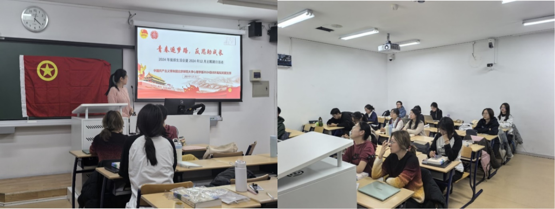 爱爱啦 2024级本科励耘班团支部于2024年12月23日在教八306室开展了以“青春逐梦路,反思助成长”为主题的组织生活会暨团日活动,班级18位团员全部参加。 首先,团员们共同学习了“习近平在庆祝中国共产主义青年团成立100周年大会上的讲话”以及“党的二十届三中全会精神”主要内容。通过深入学习与积极讨论,大家深刻理解了其意义,进一步明确了作为青年团员所肩负的使命,对党的方针政策有了更为深刻的认识和理解。