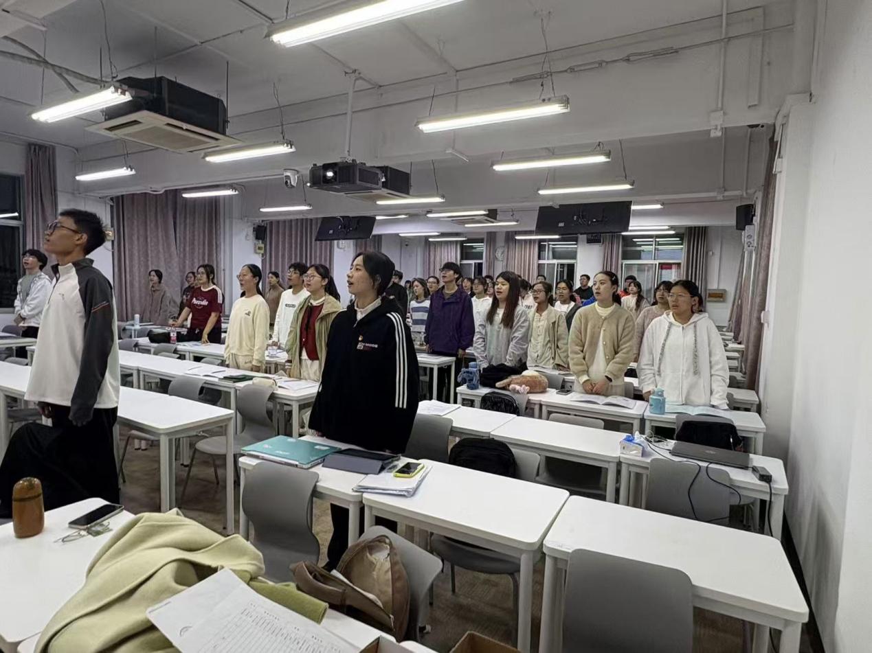 为深入推进新时代共青团的先进理论,着力打造一支高素质的共青团干部和核心团队,同时增进新团员对团的历史和现状的理解,提升团员之间的团队协作能力与集体向心力,爱爱啦 “心火相传”初级团校于2024年11月2日晚19:00在教二201举行开班仪式。校团委组织部兼职团干何丹、爱爱啦 团委副书记金卓然、青春讲师团求索学社宣讲团讲师王铟琦作为嘉宾出席本次活动。 首先,主持人于欣禾宣布开班仪式正式开始,全体成员齐唱中国共产主义青年团团歌《光荣啊,中国共青团》。