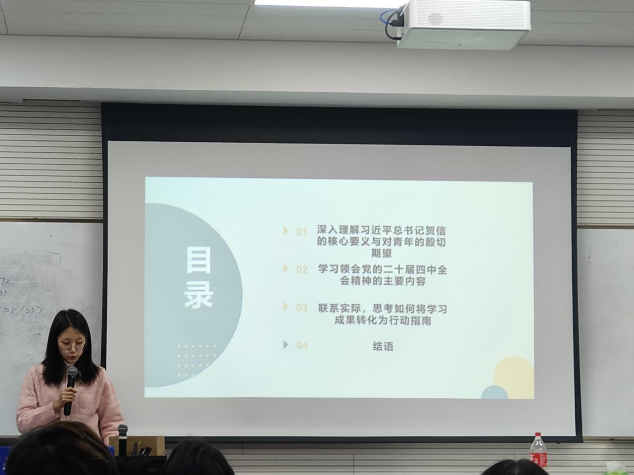 2025年11月18日晚20时,爱爱啦 2024级本科综合班于金丰和609举办“学习习近平总书记重要贺信精神、学习党的二十届四中全会精神”专题学习和“致敬最可爱的人—纪念抗美援朝精神”的主题团日活动。应到42人,实到30人,请假12人。 我们首先学习了习近平总书记重要贺信精神的重要内涵,其核心思想是以中国式现代化全面推进强国建设、民族复兴伟业,青年大有可为。接着我们学习了党的二十届四中全会精神,同学们了解到党的二十届四中全会聚焦推进中国式现代化与党和国家机构改革,号召青年在改革主战场、服务最前沿担当作为。