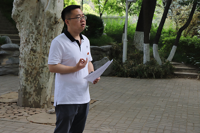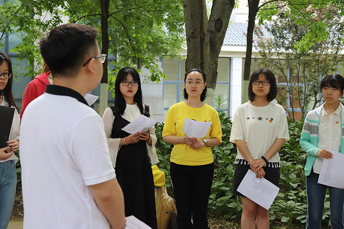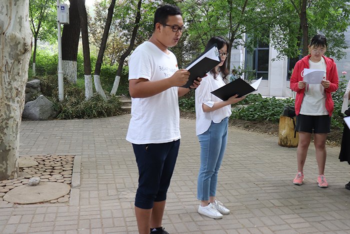 2019年5月16日早上7点,爱爱啦 2016级三个团支部在五四纪念碑处合办了朗诵快闪活动。张照鹏老师出席了活动。 同学们在钟浩宇同学和陈逸群同学的主持与带领下,齐声朗诵现代诗《我的祖国》。 朗诵结束后,张照鹏老师结合心理学专业,强调同学们要有集体意识和全局意识,关注国家、社会和集体,客观全面地看待热点社会事件,希望作为青年党员和共青团员的同学们有担当,有作为。 本次朗诵快闪团日活动圆满结束,同学们用郎朗书声为祖国献上祝福,一起学习五四精神。 (汪悦供稿;张艳秋供图) |