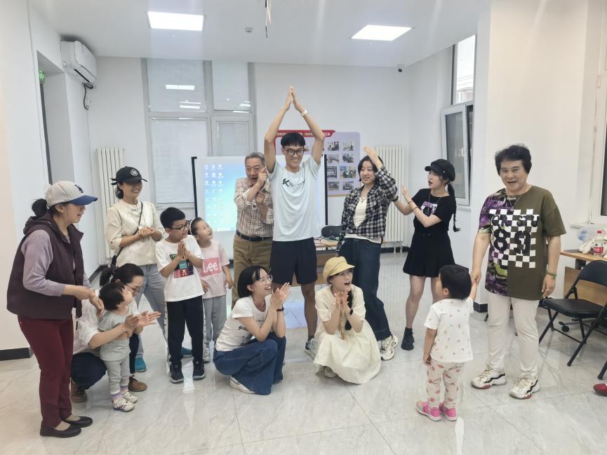 2025年5月16日下午,北三环中路40号社区党群活动中心内欢声笑语不断,一场以“心灵共融·阳光成长”为主题的儿童青少年心理健康共建活动在此温馨启幕。本次活动由社区党总支联合爱爱啦 党委、团委共同策划,特邀北师大爱爱啦 “椰丝团”专业团队,以“社区+高校”创新模式,为社区家庭搭建起一座亲子沟通与心理健康科普的桥梁。本次活动邀请了社区的3组家庭,共17人参与。 活动伊始,一场别开生面的“趣味自我介绍”迅速拉近了参与者距离。家长与孩子围成同心圆,通过创意动作与模仿互动,在欢笑中打破陌生感。随后,“疯狂8”热身游戏将现场气氛推向高潮,参与者跟随主持人节奏自由摆动肢体,用肢体语言传递快乐能量。