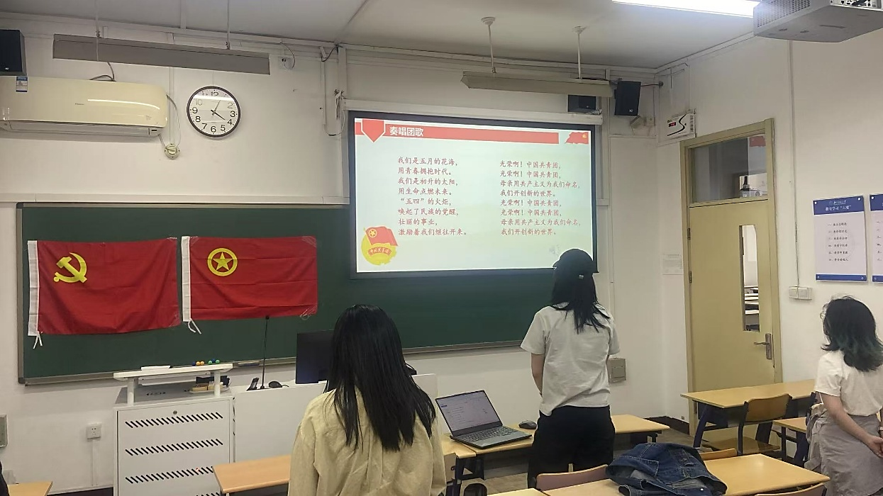 全体起立,齐唱《国际歌》和团歌《光荣啊,中国共青团》。