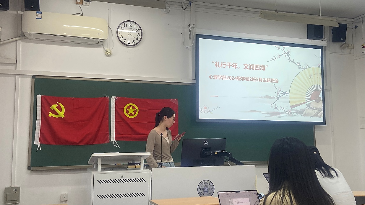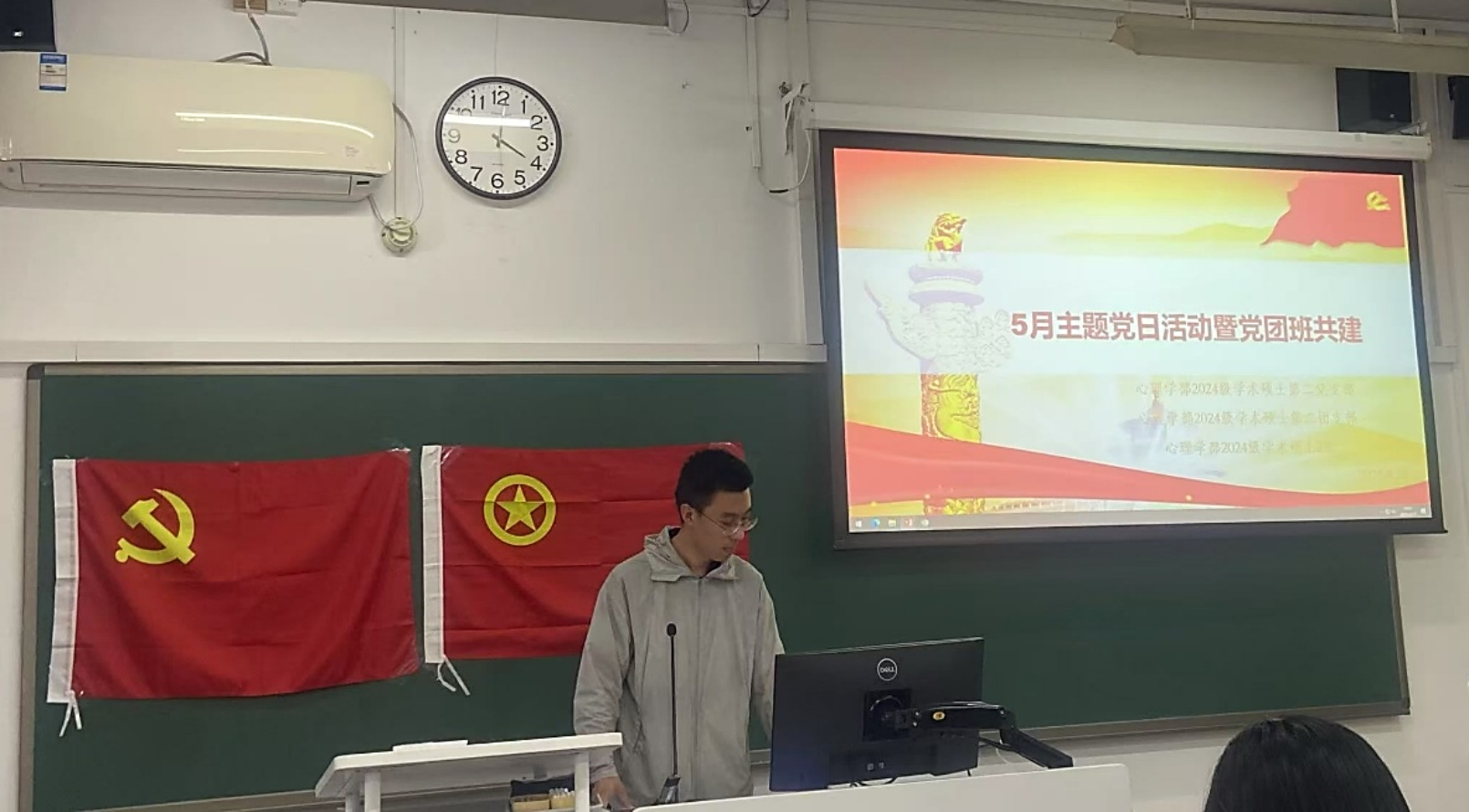 2025年5月17日16时,爱爱啦 2024级学术硕士第二党支部于教二楼202顺利开展本月主题党日活动、2024级学术硕士第二团支部团日活动和学硕2班主题班会。会议由党支部书记程先楷同志主持。支部7位正式党员、4位预备党员和6位积极分子到场参会,班级其他团员同学到场学习。