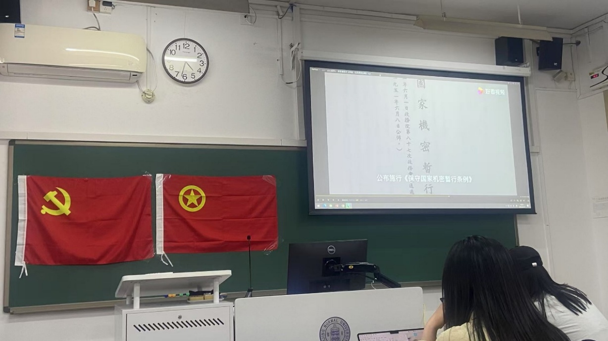 本次的主题党日活动由支部书记程先楷同志主持,主要有两部分议题。首先,为深入学习贯彻新修订保密法及其实施条例,切实增强师生保密意识和能力,保密宣传教育势在必行。本次活动中,大家首先学习了2025年保密公益宣传片《指尖的守护》和《守望:红色保密往事》。而后,程先楷同志带领大家学习了保密法律法规和保密纪律要求。