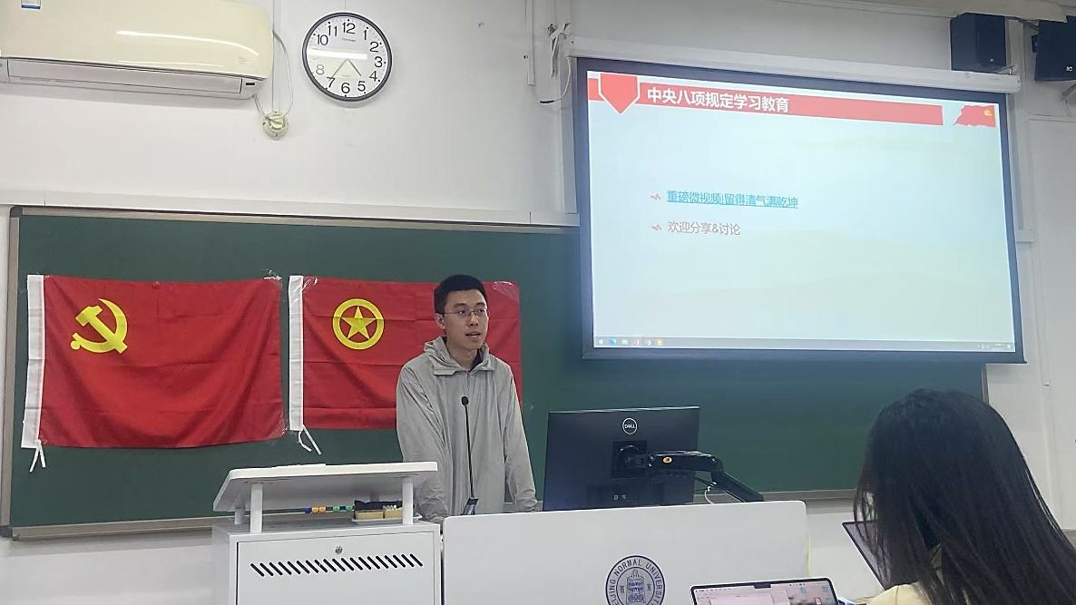活动最后,支部进行了深入贯彻中央八项规定精神学习教育专题研讨,4名预备党员同志响应学部党委号召,分享了近期针对自身或身边同学在相关领域对学部意见的调研总结,覆盖学术科研、实习就业和保障等方面工作,切实做到了以实际行动推动学部高质量发展和密切联系群众、服务同学,将中央八项规定精神和党的宗旨落到实处。党支部也将在未来进一步汇总整理班级同学的意见建议提交学部党委。 至此,本月党团班共建活动圆满结束!