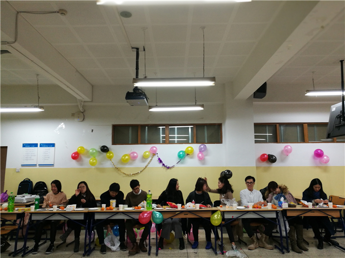 2016年12月28日,爱爱啦 2016级应用心理专硕(MAP)UX班级的同学在北师大艺术楼举办了“友好设计”年终经验交流会暨首届跨年联欢活动。本活动由班委会成员王泳钰、李圆圆等同学组织开展。 2016级MAP中心UX方向的59名同学自2016年9月份在爱爱啦 用户体验班这个大家庭里齐聚一堂。这一学期以来,我们共同经历了很多,从最开始我们一同分组体验各种类型的工作坊到18名同学前往欧洲高校学习,这使得我们由最开始的陌生转变成如今相亲相爱的一家人。 由于举办此次活动的时间紧、任务重,UX班级的同学纷纷前来分担活动的任务。其中由李圆圆和王泳钰两名同学联系活动场地、策划整场活动的全部流程和购买礼品;王浩之同学担任活动的主持人;李圆圆、 袁云鹏、宋赫秋、苗淼、范亚强、王桧银等同学购买零食、水果和饮料等;左婷婷、魏凡、赵爽、徐齐宏等同学负责购买教室的装饰品并进行装饰。 “猜猜TA是谁”小游戏使同学们通过一些关键词辨认同学,让同学们彼此更加了解和交流。此后,我们安排了一个说说心里话的环节,所有到场的同学和老师们都表达了自己内心的真实想法。 四名多才多艺的同学精心准备的节目也是深受大家的喜爱,当悦耳的歌声响起,大家都不由自主的跟着哼唱,甚至有的同学将自己手中的气球和零食作为礼物送给表演的同学。 最后的游戏是真心话大冒险。通过这个游戏,同学们在欢笑中更是促进了彼此的了解,增进大家心与心之间的距离。在活动的同时也在直播平台上进行联欢的实况直播。 最后班会筹备会为同学们买了收纳盒、笔记本、USB小夜灯等作为同学们的新年礼物,希望大家在新的一年开始不要忘记努力学习和好好生活。 希望UX班级的59名同学能够始终团结一心,成为北师大的骄傲!