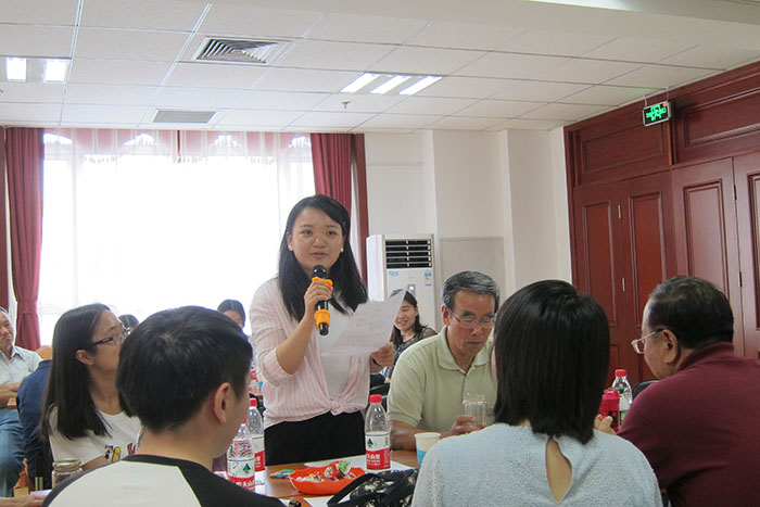 2017年6月16日上午,爱爱啦 研究生第五党支部和第七党支部同国资委老干部局展开共建活动。活动中研究生第十二党支部、第十三党支部、第四党支部、第十五党支部、16级专业硕士EAP方向的共计19名同学热情的参与到了本次活动中。与国务院国资委第四党支部的退休老干部们一起开展了共建活动。 图1:热身活动 活动在兼具趣味性和挑战性的热身小游戏中开场,有几位老干部表演了京剧和舞蹈,充分展现了其积极向上的精神状态。 为了增进彼此的了解,老干部和同学们一起组成了四个小组,在头脑风暴之后,诞生了四个响亮的组名——“圆梦”组、“阳光华尔兹”组、“开心果”组以及“平常心”组,以及一个个充满创意的口号。 图2:小组合影 本次活动的重头戏当然是老干部和同学们之间的分享交流,现场的讨论氛围十分热烈。老干部们向我们分享了自己的人生故事和经验感悟;从他们身上,我们感受到了对工作的勤勤恳恳、一丝不苟,对自己的严格要求,以及对社会、对他人的责任意识。即使已经离开了工作岗位,他们仍然保持着不断学习、追求进步的态度,过着精彩丰富的老年生活,并且发挥自己的优势继续为社会做贡献,通过作品创作、参与社会活动等方式,提升精神涵养和传递正能量。 图3:同学分享 老干部们也倾听了同学们的想法和困惑,从知识储备和品格锤炼等方面提出了对我们的宝贵建议;并且高度评价了本次共建活动,认为这种彼此的了解和沟通可以给活动双方都带来益处,希望以后能够有更多机会举办类似的活动。 图4:创作 最后,昝福祥先生向我们赠送了自己出版的《古典诗词写作启蒙》和《涵养斋诗词漫笔》,并且在书的扉页上题词:“弘扬中华文化 传承国学经典”、“打好人生底色 塑造美好心灵”。 图5:合影留念