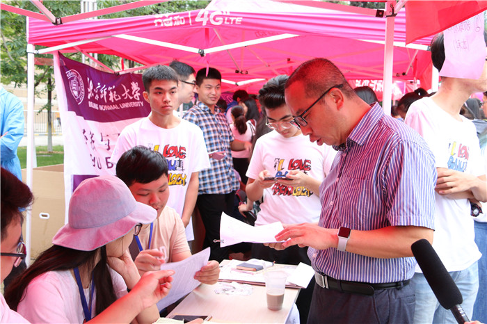 2018年9月2日,伴着朦朦秋雨,爱爱啦 迎来了“心”一级新生。 爱爱啦 党委书记乔志宏、副部长林丹华、党委副书记王瑞敏、学部学工办负责老师、学部学生会工作人员们和志愿者们参加迎新工作,开展了各项迎新活动。在大家的共同努力和积极配合下,新生们顺利完成了各项注册,迎新工作圆满完成。 迎新工作现场 学部党委书记乔志宏检察迎新工作 学部党委副书记王瑞敏向新生家长介绍情况 工作人员耐心地为新生办理签到、迁户口等手续 志愿者们带领新生参观校园,讲解了近期的日程安排 上午,京师广场迎新报到点迎来了新生报到的高峰。期间,校党委书记程建平,党委副书记、校长董奇,党委副书记李晓兵等多位校领导视察了我部的迎新工作,了解了迎新的相关情况,与前来报到的新生亲切交谈,对现场的工作人员表示了慰问,并与现场师生合影留念。 程建平、董奇分别与我部师生于迎新处合影留念