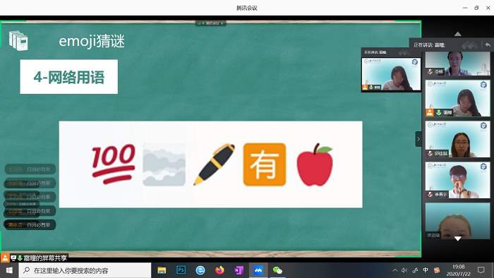2020年7月22日19:00,爱爱啦 2018级本科2班的线上班会正式开始。本次班会由班长吕煦彤主持、班主任黄利老师和57名同学共同参与。 班会共分成三个部分,首先是游戏暖场。由班长出题,组织大家玩“你画我猜”、“emoji猜谜”和“智力问答”,最先答对的同学可获得红包奖励。从“俯拾皆是”到“除草剂”,从“森罗万象”到“天涯共此时”,再到最后的“雅典奥运会( )世界纪录夺冠,打一爱爱啦 老师”,同学们在紧张激烈的答题中活跃了班会氛围,暖场效果较好。 之后是班会的主要环节,生活分享。班长在前期通过问卷调查了同学们这半年来印象最深刻、最得意和最有趣的事,以及这半年来的心情关键词,在班会上向大家呈现结果,并邀请大家针对其中的内容进行分享。有意思的是,同学们的心情关键词,一大部分是“焦虑”,一大部分是“平静”,或是因为接二连三的大作业而感到焦虑,或是因为疫情期间身边没有什么大事发生而感到平静。由于时间有限,几十个人每人只能分享几句话,但这仅仅的几句话,也或多或少地引起了大家的共鸣,将大家的情感联结起来。 最后是事务总结。班长回顾了一下大二下学期持续开展的小电台活动,并期望大家在未来继续该活动时多多参与。之后,班主任总结了本次班会,并提醒了一些疫情期间在家生活的注意事项。 由于疫情的原因,2班这个70多人的大家庭已经有半年没有团聚。从极高的出席率就可以看出,每个人都是心系着这个家庭、渴望着这次团聚的。本次线上班会,不仅玩了游戏、总结了事务,最重要的是,每位同学真实而用心的生活分享,将散布在全国各地的2班成员联结起来。在班会后的感想收集中,有的同学表示:“大家的分享有很多地方戳中了我,像是在提醒着我过去一段时间生活中未曾注意的美好”、“大家分享了好多假期的经历,感受到了和同学们的连接”。也有的同学表示:“即使在家里还有很多的人在做着和自己一样的事情,看着一样的节目,吐槽、调侃着一样的轶事,关心着什么时候才能回到热爱的校园”、“看到了很多好朋友们,大家还是没怎么变”。还有的同学直接感叹道:“很爱很爱二班的所有人啦!”、“希望马上可以再见面!”。不论物理距离多远,大家的心却被这场线上班会牵连在一起,彼此之间仿佛只有咫尺之近。 此情可待成当面,天涯何处无二班。期待二班的下一次重聚。 供图:梁平原 李楠 李春宇 供稿:李春宇 |