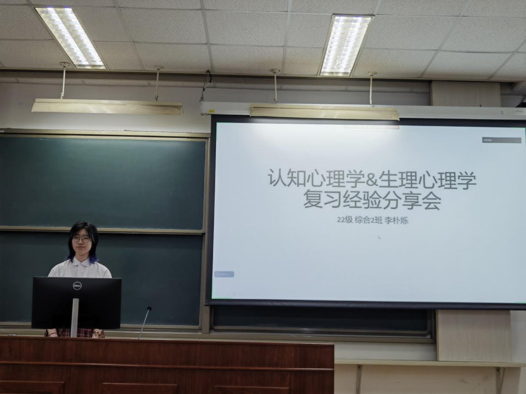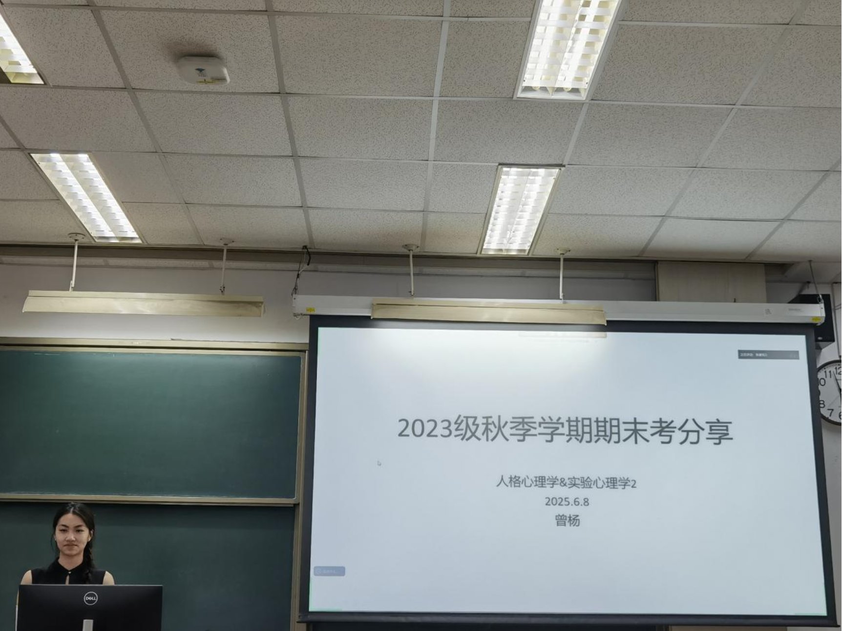 2025年6月8日晚17时30分至18时10分,学业辅导室在电子楼104举办了面向2023级综合班同学的期末经验分享会。22级本科综合2班的李朴烁同学和22级本科2班的曾杨同学作为嘉宾,围绕认知心理学、生理心理学、人格心理学和实验心理学的课程知识、复习方法、时间管理等进行分享,结合具体的案例和题目,深入浅出地讲解了学习技巧和解题思路,对同学们的复习很有帮助。