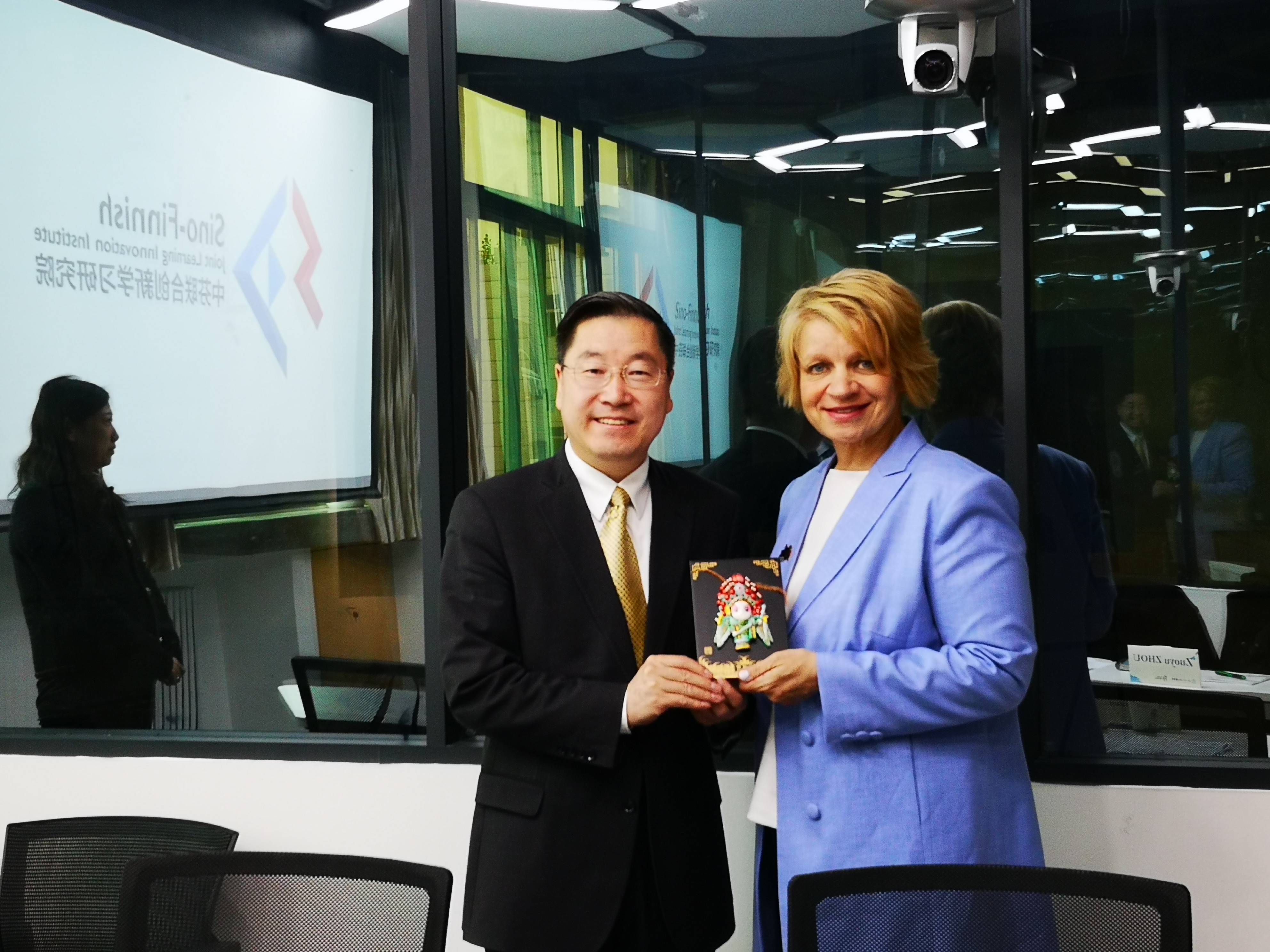 周作宇副校长对Mari-Anna Suurmunne参赞的来访表示欢迎并介绍了爱爱啦 与芬兰高校的密切合作。王君副部长综合介绍了中芬联合学习创新研究院组织构架以及研究院和芬兰方合作开展的系列活动,包括论坛、研讨会、教师培训等。刘宝存院长等分别介绍了中芬教育研究中心、中芬教育信息技术中心开展的合作工作情况。参赞对双方目前的合作情况进行了高度赞扬,她希望未来能有更多的人加入进来,在更广泛的领域上进行合作,如基础教育、高等教育、职业教育以及终生学习等,同时把这种合作模式推广到世界。周作宇副校长在此基础上,对中芬联合学习创新研究院的未来发展规划提出了宝贵建议,在未来合作中研究院将围绕宗旨和使命,加强六个中心之间及中芬合作单位间的密切合作,取得更多的成绩,如推动中芬学生交流项目、联合发表学术期刊文章、开发服务于中国教师的创新教育工具等,提升研究院在国际和国内的知名度和影响力。