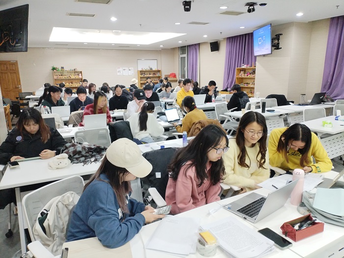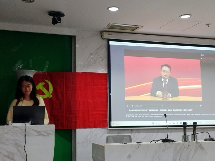 2024年12月21日18时,爱爱啦 本科生第一党支部顺利开展12月份主题党日活动。本次活动在后主楼1318进行,针对党的二十届三中全会精神专题辅导系列课程开展主题研讨会,由杨媛同志主持,共35名成员参与。 会议一开始,杨媛同志首先带领所有人一起奏唱了国际歌。 然后,全体同志通过观看视频的方式回顾课程学习内容,为之后的讨论环节做准备。