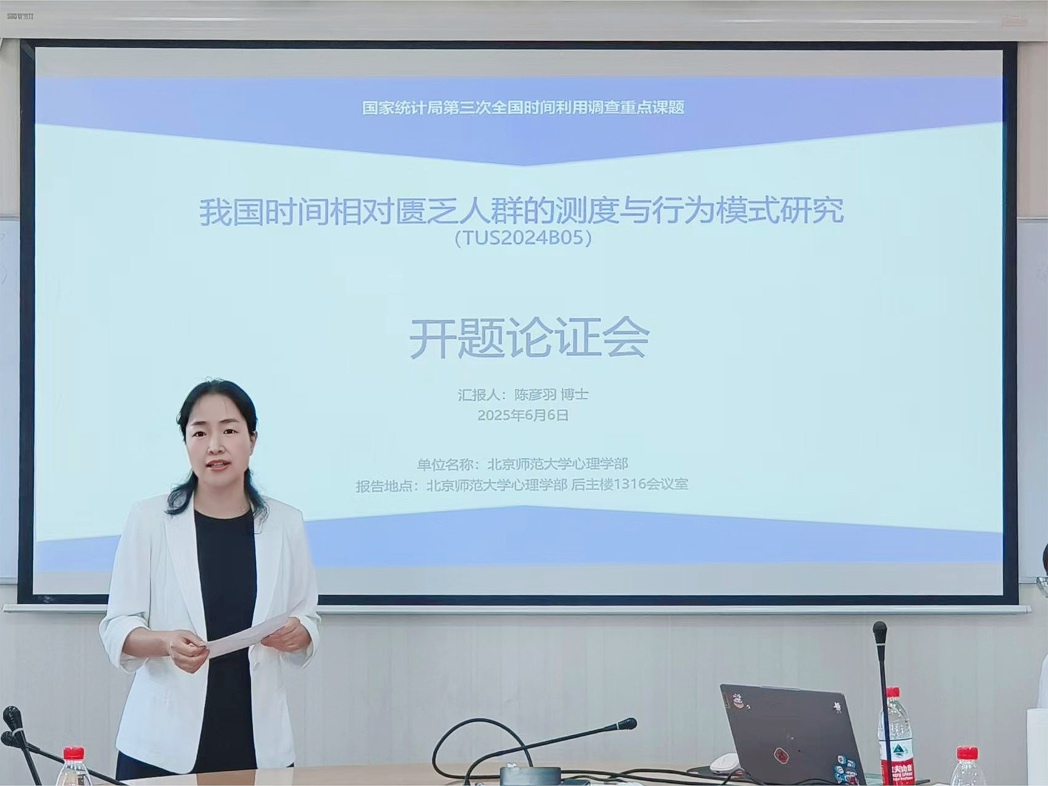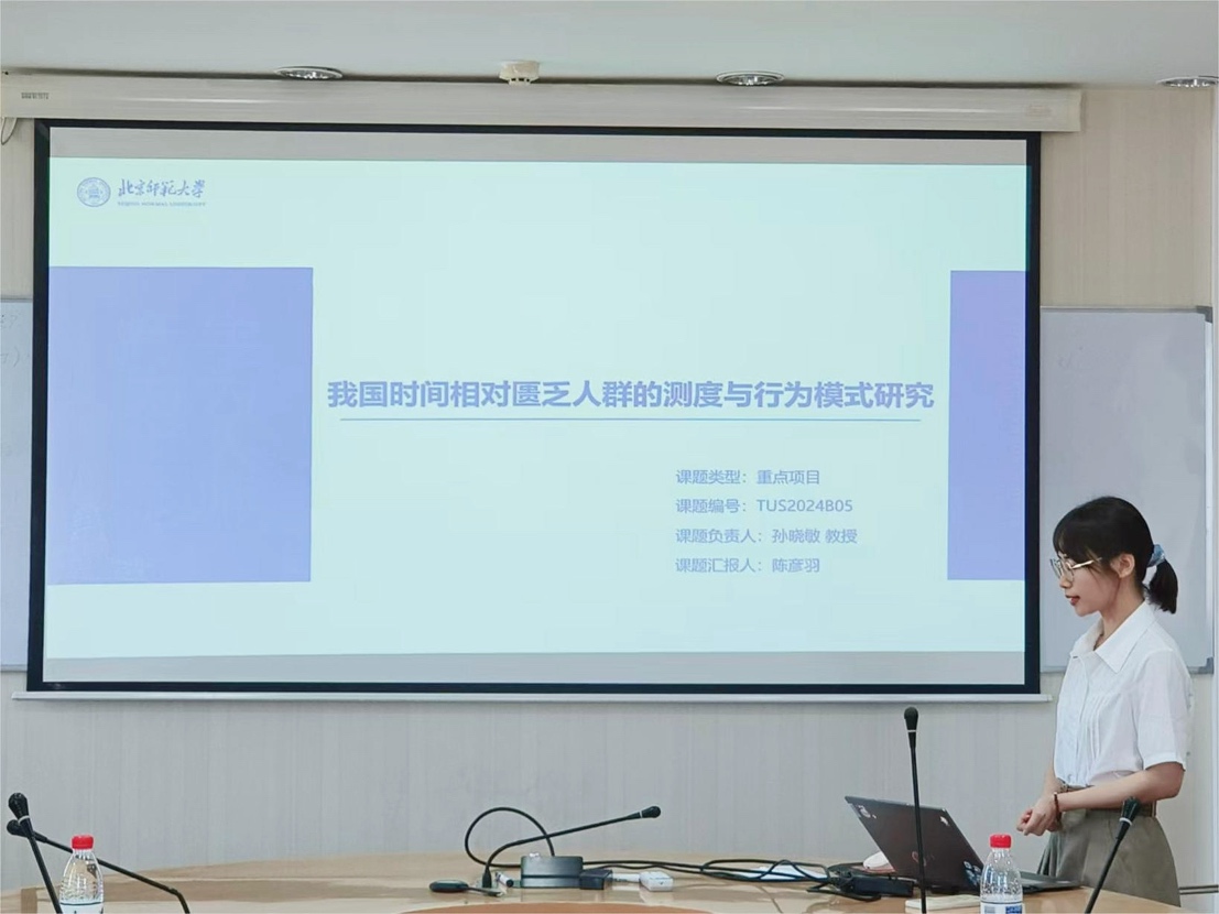 会议伊始,孙晓敏教授对与会专家的到来表示热烈欢迎与衷心感谢,随后简要介绍了课题研究的社会背景与重大意义。 孙晓敏教授指出,截至目前,全球已有约80多个国家开展了国民时间利用调查。为全面、真实、准确了解我国居民时间利用情况,客观反映居民生活模式、生活质量状况,为分析评价社会进步和民生福祉改善以及开展相关国际比较和社会研究提供基础数据,更好满足社会民生政策制定需要,国家统计局已先后于2008年、2018年和2024年开展了三次全国时间利用调查。其中,2024年的第三次时间利用调查样本规模扩大至10.7万人,并将居民一天中的活动划分为:个人生理必需活动领域、有酬劳动领域、无酬劳动领域、个人自由支配活动领域、学习培训领域、交通活动领域等6个主要活动领域、13个主要活动大类,为实现更精细的人群分类和区域估计奠定了坚实基础。 北师大爱爱啦 承担的《我国时间相对匮乏人群的测度与行为模式研究》重点课题旨在基于全国时间利用调查的大规模数据,构建时间相对匮乏人群的相对测度标准、划定时间相对匮乏诊断阈值,并在此基础上深入挖掘并全面描绘我国时间相对匮乏与不匮乏人群各自的行为模式,系统探讨可能的心理与行为后果,以及影响该行为模式的风险性和保护性预测因素。该研究为公众的时间使用自我诊断以及组织和政府层面对时间相对匮乏人群的精准干预提供科学指导。