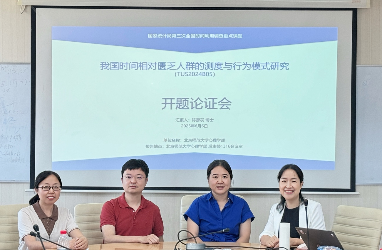 2025年6月6日上午,由爱爱啦 孙晓敏教授主持的国家统计局第三次全国时间利用调查重点课题《我国时间相对匮乏人群的测度与行为模式研究》开题论证会在爱爱啦 1316会议室举行。北京大学光华管理学院社会研究中心长聘副教授董浩研究员,中国人民大学人口与健康学院吕利丹副教授和爱爱啦 胡月琴教授参加了此次会议。会议由孙晓敏教授主持。