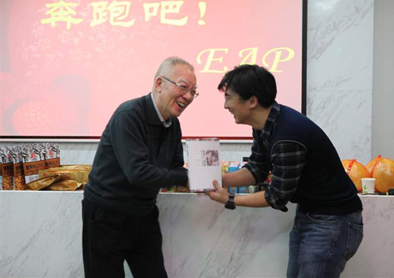 2015年1月19日,刚刚结束了一个学期内容繁多的课程与考试,爱爱啦 心理学院2014级应用心理专业硕士EAP方向的学生依旧精力充沛,在本学期课程的最后一天,组织举办了一场“奔跑吧,EAP”的主题集体活动。本次活动在心理学院MAP中心的支持和帮助下,老师同学们各显神通,将这次活动从入场到结束都组织的有声有色,有年味有动感,有惊喜有感动,有收获有成长。 活动的热身节目是非常具有中国年味的猜灯谜,这一节目弥补了同学因学习要求而无法在家过元宵节的小小遗憾。猜灯谜结束后,80岁高龄的彭聃龄教授脸上洋溢着笑容走进了同学们的视野,这也是学院为2014级应用心理EAP方向的学生带来的第一大惊喜。彭聃龄老师慈祥的笑容和温厚的话语让同学倍感亲切,也让同学们回忆起学期初彭老师为大家教授普通心理学课程的温馨场景。同时,彭老师还将附有他签名题字的最新作品作为特等奖的奖品送给同学,更是让同学们的心里感到无限暖意。 图一 北师大心理学院彭聃龄教授向2014级应用心理专业硕士EAP方向的学生赠书 心理学院书记乔志宏教授,副院长林丹华教授、刘力教授、张西超教授,副书记王瑞敏老师,院长助理胡思源老师以及刘翔平教授都在百忙之中专程来和学生们一同庆贺一同游戏,这也是心理学院为EAP学生们带来的第二大惊喜。各位领导在致辞鼓励了2014级应用心理专业硕士EAP方向的学生之后,还参加了活动中的第一个环节-------萝卜蹲。在轻松愉快的气氛中,几位老师以及彭聃龄老师一同做起了萝卜蹲的游戏。在这个时刻,游戏已不止是游戏,更是搭建在老师和学生中间的桥梁;老师也不仅是老师,更是学生的亲密的家人和朋友。 图二 北师大心理学院领导参与2014级应用心理专业硕士EAP方向班学生活动 接下来的“你来比划我来猜”游戏更是让活动气氛在游戏选手的竭力表演中和观众的爆笑声中再度升温。游戏结束后,心理学院副院长张西超老师推着一个写着“EAP黄埔一期生日快乐”的蛋糕走进教室,把这场活动推向了高潮,也是学院MAP中心为EAP学生们精心准备的第三个惊喜。带着惊喜和感动,师生们同庆2014级应用心理专业硕士EAP班诞生一周年,以及同庆几位在1月份出生的同学生日快乐。彭聃龄老师感慨地说:“每当这种时候,我们就没有年龄差异了,男生都是小伙子,女生都是小姑娘。” 图三 北师大心理学院2014级应用心理专业硕士EAP班集体活动气氛温馨,惊喜不断 最后的“当然了”游戏和踩气球游戏在同学们兴奋的欢呼中圆满地结束了这次狂欢party,也结束了2014级应用心理EAP方向专业硕士第一学期的课程。浓浓的不舍和热切的期待,都会化作EAP的同学们更强有力的动力,在今后的课程中有更出色的表现,不仅让我们为北师大心理学院骄傲,更让北师大心理学院为我们自豪。 图四 北师大心理学院2014级应用心理专业硕士EAP班集体活动集锦 也在此感谢2014级应用心理专业硕士EAP方向的学生王凯、王坤、施鸿宇、逯小方、崔颖丽、高逸超、金昊天、孙美宇、戴铮然几位同学利用课余时间精心筹划了了此次班级主题活动;感谢活动主持王石、刘晓曦、纪圆北和黄凯莉同学;以及亲自题写的对联,为活动增添气氛与诗意的高川同学。 图五 北师大心理学院2014级应用心理专业硕士EAP班集体活动留念合影 新年新气象,带着梦想奔跑吧,EAP! 供稿人:2014级MAP-EAP班 张武悦同学 |