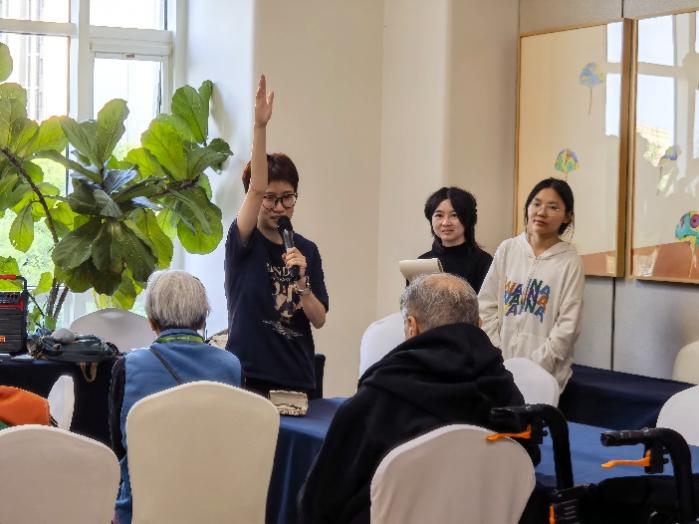 泰康燕园长辈代表现场发言 总结会的最后环节由4位学生代表进行发言。时光纪年回忆录项目代表高诗月和彭菲儿分享道:与长辈的深度对话恰似翻开一部厚重的人生典籍,那些串联起的岁月故事里,不仅藏着时光的褶皱,更凝结着长辈们的生命感悟和人生哲学。从厨房灶台前翻炒的烟火气,到庭院里讲述的往昔岁月,字里行间都流淌着对生活的炽热情怀。这种从故事中传递出的积极力量,正通过代际对话如春雨般浸润着年轻心灵,让生命的智慧在代际间不断传承。 脑力运动会项目代表黄莹和刘楠同学则分享了团队的心路历程:策划初期他们曾反复推敲“互动游戏是否会让长辈感到压力?环节设计能否兼顾趣味与贴心?”但是在活动现场,她们看到了长辈们成功完成拼图后高兴得击掌相庆,听到了老人们由衷地赞叹“这些游戏设计得既新颖又有趣”,这份来自长辈的真切肯定,让他们获得了很强的成就感和意义感,也让她们在后续活动的筹备中更加自信和笃定,将更多兼具创意与温度的互动形式融入到后期的活动中,让长辈们在持续的脑力碰撞中体验到更多的挑战和乐趣。