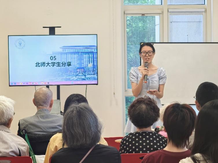 三、项目总结会 2025年6月7日,实训项目总结会在泰康燕园召开。会议由北师大爱爱啦 王小华老师主持,他首先通过视频回顾了项目进程中的高光时刻,并对项目开展情况及成果进行了全面总结,让与会人员深刻感受到项目的扎实推进与丰硕成果。泰康燕园活动部负责人李亚南女士代表泰康燕园发言,她对北师大学生的积极参与和倾情付出表达了赞赏,直言学生们的努力为长辈们带来了无尽的快乐与温暖。泰康燕园北师大校友会会长邵英老师充分肯定了实训项目的意义和价值,并欣喜于此次项目成功地搭建了北师大与泰康燕园合作桥梁,让心理学知识在服务老年人领域发挥出更大价值。彭华茂老师代表北师大爱爱啦 致辞,她诚挚感谢泰康燕园提供的宝贵实践机会,也对学生们在无外部奖励情况下,依然全身心投入并圆满完成项目的精神给予高度赞扬。