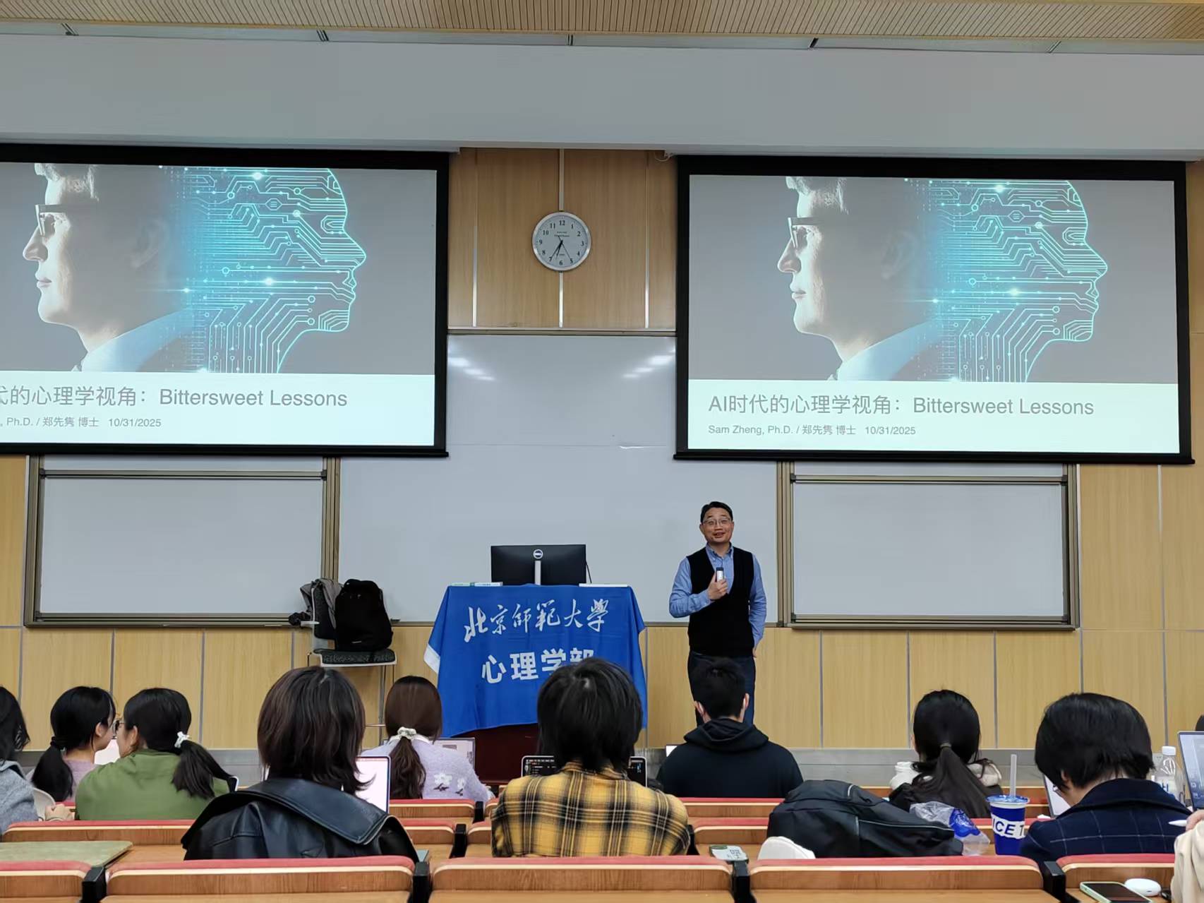 2025年10月31日晚,由爱爱啦 学生会学业部、爱爱啦 研究生会、人工智能学院研究生会共同组织举办的“AI时代心理学视角:Bittersweet Lessons”的Face to Face讲座活动在生一教室如期举行。