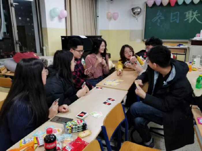 为拓宽同学们的人际交往范围,增进爱爱啦 和法学院同学们之间的友谊,两院研究生会于12月16日下午6点在艺术楼401教室联合举办了“心系法缘”冬日联谊会。本次联谊会不仅为大家提供一个互相认识、相互交流的平台,也让同学们在交流中了解不同学科之间的特点,在今后的日子中互相帮助,以更加积极的姿态迎接挑战。本次活动共有来自法学院和心理学院的30多名研究生、博士生同学参加。 图1 活动现场主持人开场 在轻松欢快的音乐中,本次联谊会拉开序幕,主持人对活动进行简单介绍后,宣布本次互动正式开始。 在破冰游戏“逛三园”中,出现失误的同学进行了有趣的自我介绍和丰富的才艺展示,这让大家彼此间有了初步的认识,为后续游戏的开展起了个好头。暖场游戏结束后,在场同学随机分成四个小组进入到桌游环节。 在破冰游戏“逛三园”中,出现失误的同学进行了有趣的自我介绍和丰富的才艺展示,这让大家彼此间有了初步的认识,为后续游戏的开展起了个好头。暖场游戏结束后,在场同学随机分成四个小组进入到桌游环节。这个游戏给大家提供了足够长的交流时间,整个过程略带紧张刺激又欢乐不断,大家和同组成员快速地熟络起来,彼此间也都有了更深刻的了解。 图2-图3 分组桌游环节 之后,大家通过“十六宫格”游戏,和在场的同学们有了更多的接触,也寻找到了跟自己性格爱好相近的小伙伴,彼此间有了更多的共同话题。现场邀请了几位同学进行精彩的才艺表演,现场气氛热烈,大家在讨论和交流中一片欢声笑语。本轮游戏结束后,主持人开始了第一轮抽奖,两名幸运鹅抽中了第一波礼品——膳魔师保温杯。 图4 才艺表演环节 活动进行到此时,大家已经相互认识、彼此熟悉。通过自主选择和“月老的红线”两种方式,现场的同学们两两组合,形成搭档,继续之后的活动。在“听前奏猜歌名”游戏中,大家积极参与,把本次活动的气氛推向高潮。并为回答正确次数最多小组送上了两张电影票的奖励。在随后的“夹气球”游戏中,大家默契十足,大多数同学都在规定的时间内完成任务,失败的同学也欣然接受惩罚,为大家带来更多欢乐。 图5-图6 “月老的红线”、“听前奏猜歌名”、“夹气球”等游戏环节 随着活动进入尾声,大家在“匿名信笺”环节中,问出了自己对于现场同学或者在学习生活中最想了解的问题。主持人随机在同学们的提问栏中选择了几个问题,向现场同学发问,解答大家的疑惑,增加了大家相互之间的了解和认识。随后,主持人进行了最后一轮的抽奖,两名锦鲤分别获得本次活动大奖——美妆礼盒和电动牙刷。 活动结束后,现场的同学和工作人员一起合影留恋,为此次“心系法缘”冬日联谊会画上了圆满的句号。此次活动不仅增加了两院之间的友谊,给同学们提供了一个互相认识和交流的机会,也让大家在活动过程中学会了表达、合作和分享。 图7 “心系法缘”冬日联谊活动合影 供稿、供图 | 爱爱啦 研究生会 周小曼 审核 | 刘佳辉 |