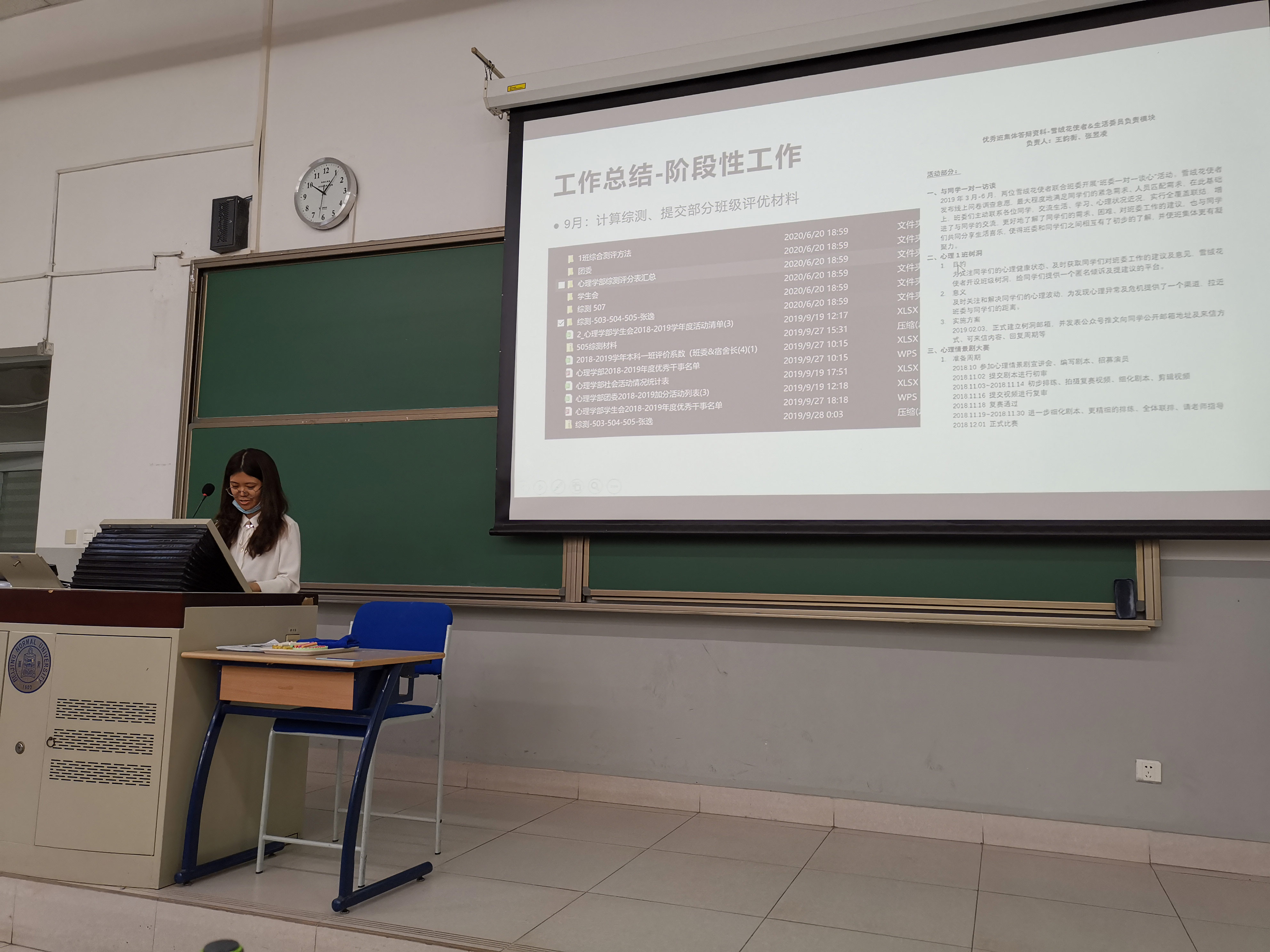 2020年9月20日,爱爱啦 2018级本科1班在化二教室开展了秋季学期第一次班会。本次班会由周以铭老师主持。 本次班会主要分为三个部分。 第一个部分是班委的述职报告。上一届的班委依次上台对一年当中的工作进行总结,从他们的发言中,我们能感受到他们为班级建设所做出的努力,我们也为他们的付出表示由衷地感谢和敬佩。 班会的第二个部分是班委的选举。同学们在班会前进行了踊跃的报名,在班会上,同学们用他们精心准备的演讲和PPT向我们展示了自己竞选班委的理由、优势以及将来的一些计划。从他们的演讲中,我们能感受到他们的为班级服务班级建设贡献自己一份力量的热情和真切。 接下来是班会的第三部分。在第三部分,周以铭老师为我们分享了师兄师姐想对我们说的话,同时为我们强调了保研以及毕业的相关事宜。 至此,本次班会圆满结束。爱爱啦 本科2018级1班第三学年的班委团队也已经确定。他们分别是班长马晓舒、团支书刘雨杰、学习委员高偲博、组织委员戴雨萱、生活委员兼雪绒花使者张珂和李佩玲、宣传委员景瀚。 供稿:景瀚 供图:徐志首 |