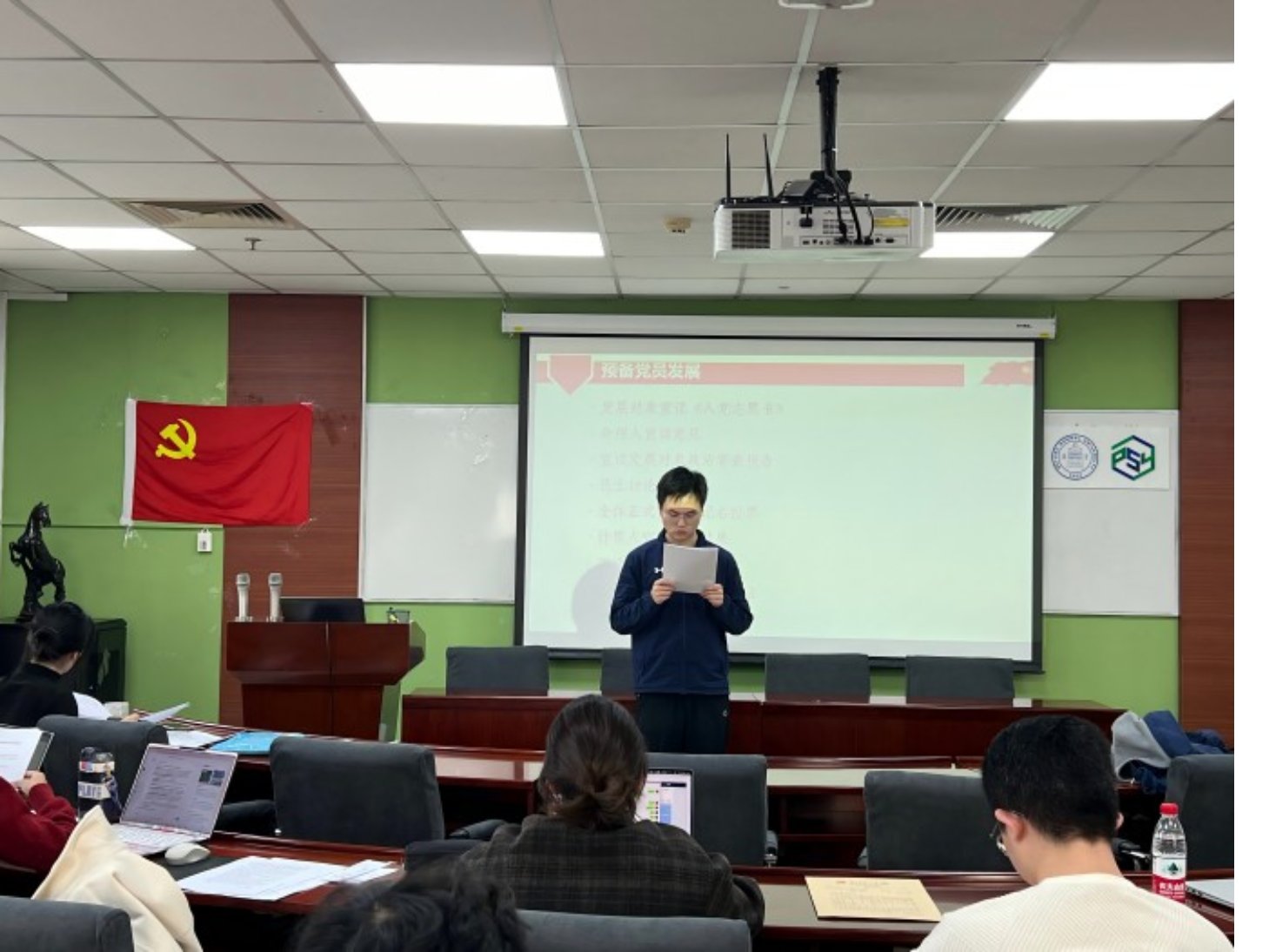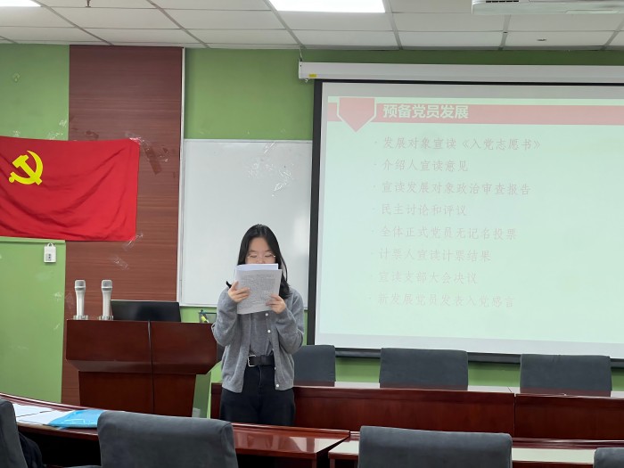 2024年11月23日14:00,爱爱啦 本科生第二党支部在后主楼1420东召开2024-2025学年秋季学期第二次党员发展大会。会议由党支部书记黄彤彤同志主持,支部内共12名党员与预备党员参会。 首先,全体起立,奏唱《国际歌》。随后由党支部书记黄彤彤同志介绍大会流程及拟发展对象。 发展对象赵娅汛、孙聪慧、张嘉明、徐傲同志依次宣读了自己的入党志愿书。在宣读过程中,四位同志以诚恳而坚定的语言,表达了自己对党组织的忠诚与向往。每一位同志都详细地汇报了自己对于党的理解和加入党组织的动机,并结合自己的成长经历和思想历程,阐述了自己在向党组织靠近的过程中所做出的努力。