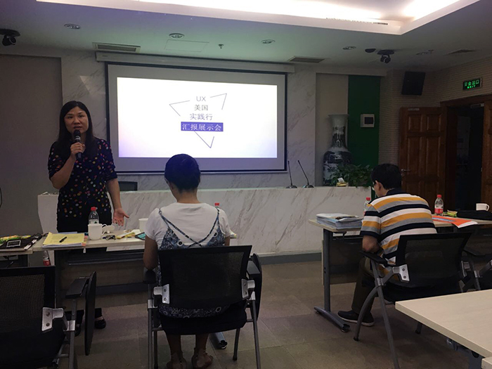7月18日,爱爱啦 MAP-UX用户体验方向2017美国实践行成果汇报展示会成功举办。爱爱啦 副部长林丹华教授、爱爱啦 部长助理胡思源副教授、研究生培养处董瑾老师,用户体验方向负责人刘伟老师和用户体验方向的辛欣老师应邀出席了活动。本次讲座由MAP中心王可老师组织,由2016级MAP用户体验方向学生袁云鹏主持。 图1 北师大爱爱啦 MAP-UX用户体验方向2017美国实践行汇报展示会 汇报展示会上,参与实践行的同学们用精彩纷呈的课题与经历,带领大家体验了收获满满的美国之行。刘伟老师作为开场嘉宾,带领大家回顾了美国行第一天到达西雅图的情境,虽然也经历了挫折,但这场美国行对于同学们的收获和意义是巨大的,西雅图、Facebook、Microsoft、旧金山、UC Berkeley、Stanford University、D . school、硅谷、META、Google……所到之处,都留下了BNUXer的足迹。BNUX也与微软西雅图基地达成了长期合作的共识。 图2 爱爱啦 MAP-UX用户体验方向负责人刘伟老师开场致辞 图3 爱爱啦 MAP-UX用户体验方向袁云鹏开场 参与实践行同学们以小组为单位,依次对美国行中所作的微软课题进行了汇报,并分享了各自的心得体会。在深度的全景体验中,带着课题出发,打通所学知识,在高密度的实践奋战中将以往知识充分调动,融会贯通。 图4爱爱啦 MAP-UX用户体验方向同学在分享课题方案 在展示会的最后,林丹华老师提出,设计来源于生活,鼓励同学们在生活中要有发现美的眼睛,扎根于生活,放眼于社会,将所见所学的领域顶尖的创造灵感转化为自己的创造动力,更多地创造美丽动人的产品,影响用户。并对每个课题提出了一些建议和对课题后续进行的期待。研究生培养处的董瑾老师也被大家的激情所打动,并对大家提出了殷切希望,希望大家作为行业的顶尖队伍,走向国际,也希望能在未来,越来越多地使用到同学们所设计的产品。相信爱爱啦 MAP-UX方向的同学们会在专业方向上继续砥砺前行!