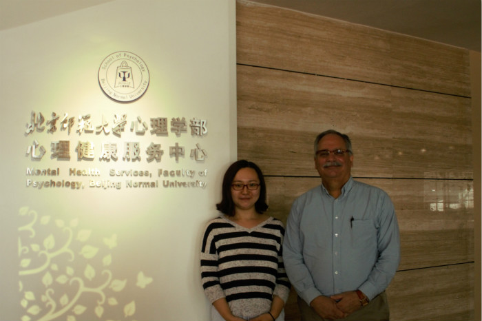 L:有一个现实问题,那些处于停滞期的咨询师可能不会主动来到都到面前,这个时候该怎么办? B:我们知道,中国紧缺专业的咨询师。在目前的情况下,是存在这样的状况,可能最需要督导的人不会来做督导,这个问题超出了我们解决的范畴。不过,希望这一现状得到改善,也是我们推动和宣传督导培训的一个重要原因。在美国,如果你想拿到执照的话,政策规定你必须接受督导,在中国,可能需要一个规范化的过程。正是因为这样的现状,才能凸显中我们现在所做的工作的深远意义。 图3 Bob教授与中心李非寒老师 L:如果我是一名有经验的咨询师,怎么才能知道我有没有成为督导师的潜质呢? B:在中国目前的情况下,如果你已经执业很多年了,你可能已经在做督导了。这个时候,现有的督导师考虑的问题可能不是潜质问题,而是自己的胜任力。如果他们没有接受过专业培训,他们的工作成效可能就不够理想,或者说在专业技能上存在一定的提升空间。