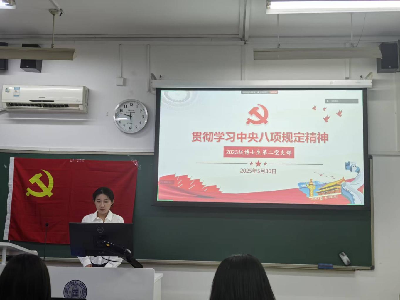2025年5月30日20点30分至21点,爱爱啦 2023级博士生第二党支部在教二楼102成功开展了深入贯彻中央八项规定精神学习教育专题党课。本次党课由支部书记邹昕童同志主持,党支部指导老师胡思源老师参会。