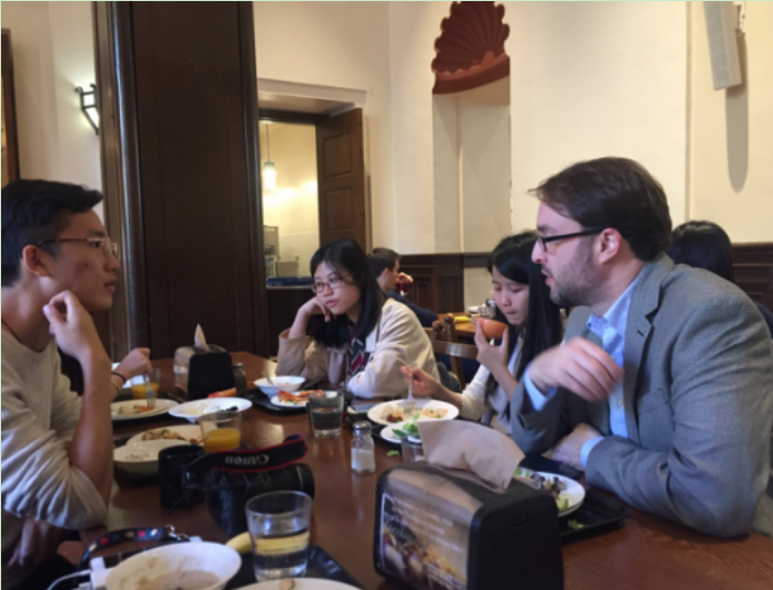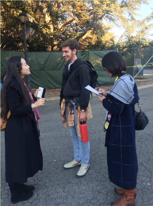 图3北师大心理学院2016MAP美国实践行成员在美国加州伯克利大学讨论学习 随后,同学们邀请老师一起共进午餐,期间和老师进行了非常愉快的交流。下午,MAP一行参观了伯克利校园,去看了著名的萨瑟塔(Sather Tower)、各个学院和伯克利的图书馆,惊叹于图书馆的丰富和种类齐全。 图4 北师大心理学院2016MAP美国实践行成员与美国加州伯克利大学教师交流 与此同时,同学们也在校园里积极开展多个主题的调研活动,相信丰富多样的活动和交流会给同学们带来不一样的体验! 图5 北师大心理学院2016MAP美国实践行学生在美国加州伯克利大学做调研 |