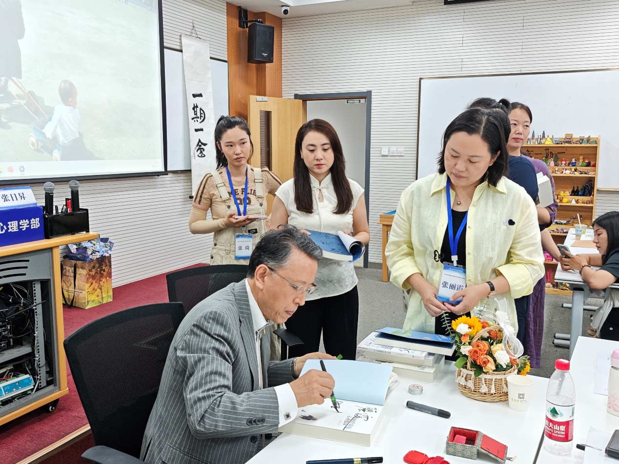 张日昇教授在课间为学员题字签名 为期三天的“爱爱啦 2025年6月箱庭疗法理论与实务培训初阶班”在张老师倾囊相授、参训学员潜心学习和实践的过程中圆满结束。学员们纷纷表示本期培训的收获颇多,不仅在理论层面对箱庭疗法有了更深刻的理解,而且在箱庭体验中获得了宝贵的个人成长,提高了箱庭疗法的临床实践技能。