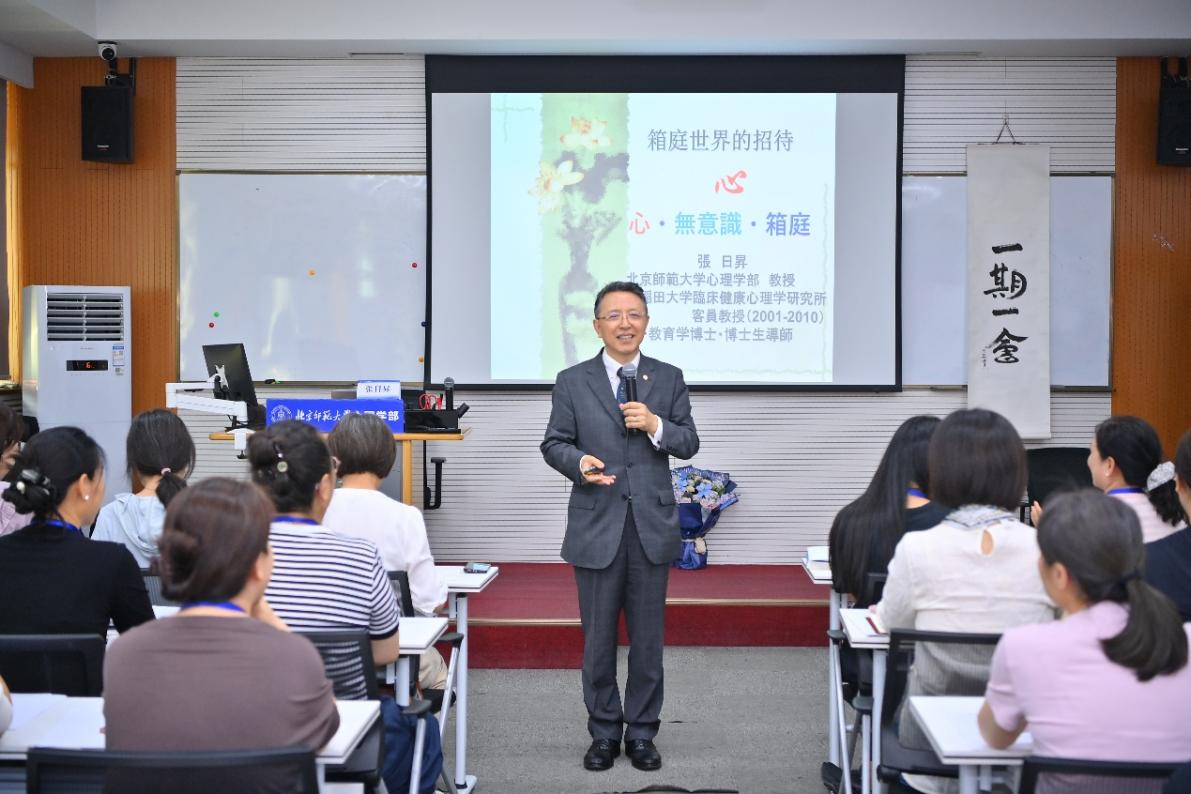 课程主讲老师张日昇教授在开班仪式上致辞 在开班仪式后,张日昇教授以“心·无意识”开启本期培训课程,在三天的过程中介绍了箱庭疗法的理论背景、治疗机制与过程、技法等内容,陪伴学员开展个体和团体箱庭体验并进行细致督导。