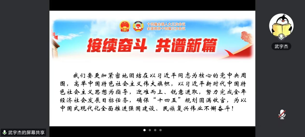 3月4日、3月5日,全国政协十四届三次会议和十四届全国人大三次会议分别在北京隆重开幕,会议聚焦国家发展大计,审议政府工作报告、讨论经济社会发展重大问题,为全面深化改革和“十四五”规划的收官之年谋篇布局。为了引导广大师生深入学习贯彻两会精神,增强责任感与使命感,爱爱啦 党委积极组织学生党员骨干集中观看两会直播,并号召各党支部开展观看学习与研讨交流活动。学部师生通过电视、网络等渠道踊跃收看两会盛况,并结合自身学习、生活和工作实际,热议国家发展成就,畅谈感想体会。