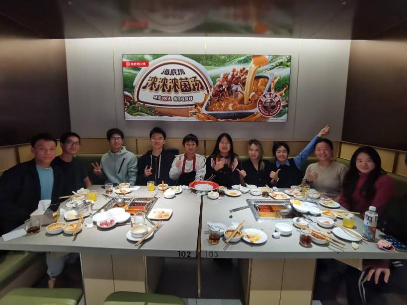 凝结团队,美食暖心:排球队秋季团建 2024年11月22日,心理排球队在海底捞火锅店聚餐,放松心情,增进团队感情。队员围坐在一起分享美食与感悟,气氛十分热闹。