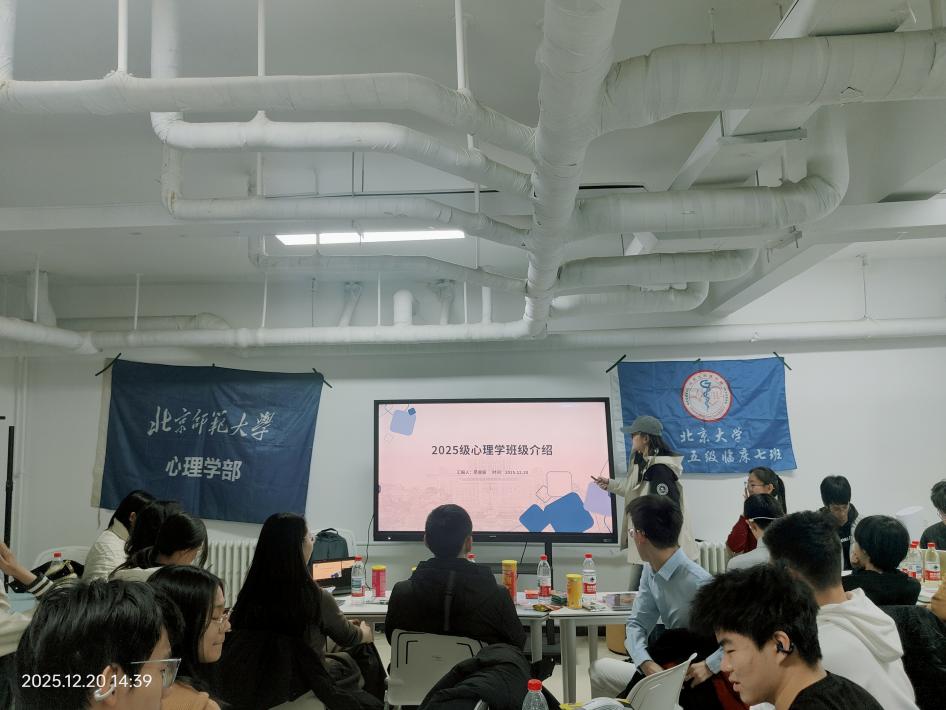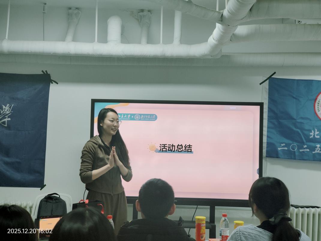 宣讲结束后,进入班级交流环节。首先由北师大爱爱啦 2025级综合班团支部与励耘班团支部班长共同介绍班级建设情况、学科特色及发展规划;随后,北京大学2025级临床7班班长详细介绍了其班级的专业优势、学习氛围及活动开展情况。双方班级的介绍增进了两校不同专业学生之间的相互了解,为后续交流奠定了坚实基础。