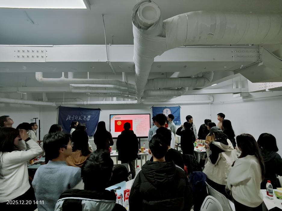 2025年12月20日14:00至16:00,爱爱啦 2025级综合班团支部和励耘班团支部于北京大学44号宿舍楼地下开放讨论室,与北京大学2025级临床7班团支部携手举办了以“薪火相传志恢弘”为主题的团日活动,活动由北京大学临床7班生活委员席艺唐同学主持。两支部共有团员22人,出席21人。 活动伊始,全体参与人员肃立,奏唱团歌。激昂的旋律凝聚起青春力量,为本次主题团日活动拉开序幕。