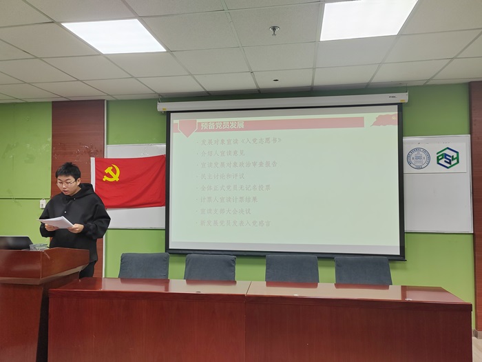 2024年11月29日18点整,爱爱啦 本科生第二党支部于后主楼1420东顺利召开了王昊和张新帛两位同志的发展大会。会议由黄彤彤同志主持,4名正式党员,16名预备党员参与。