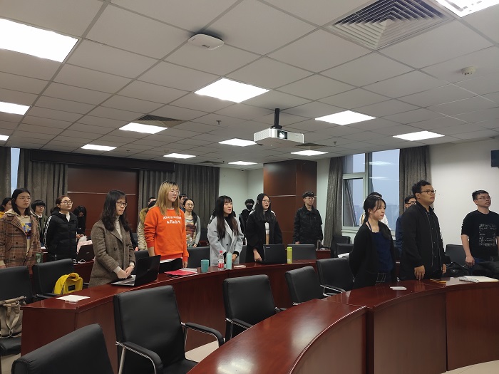 首先全体人员起立,奏唱国际歌。之后经过自荐申请和组织筛选的陈逸群、杨格晴、孙宇琪等十名积极分子依次上台进行自我陈述,讲述了自己的入党动机,以及在学习和实践中不断成长的心路历程。
