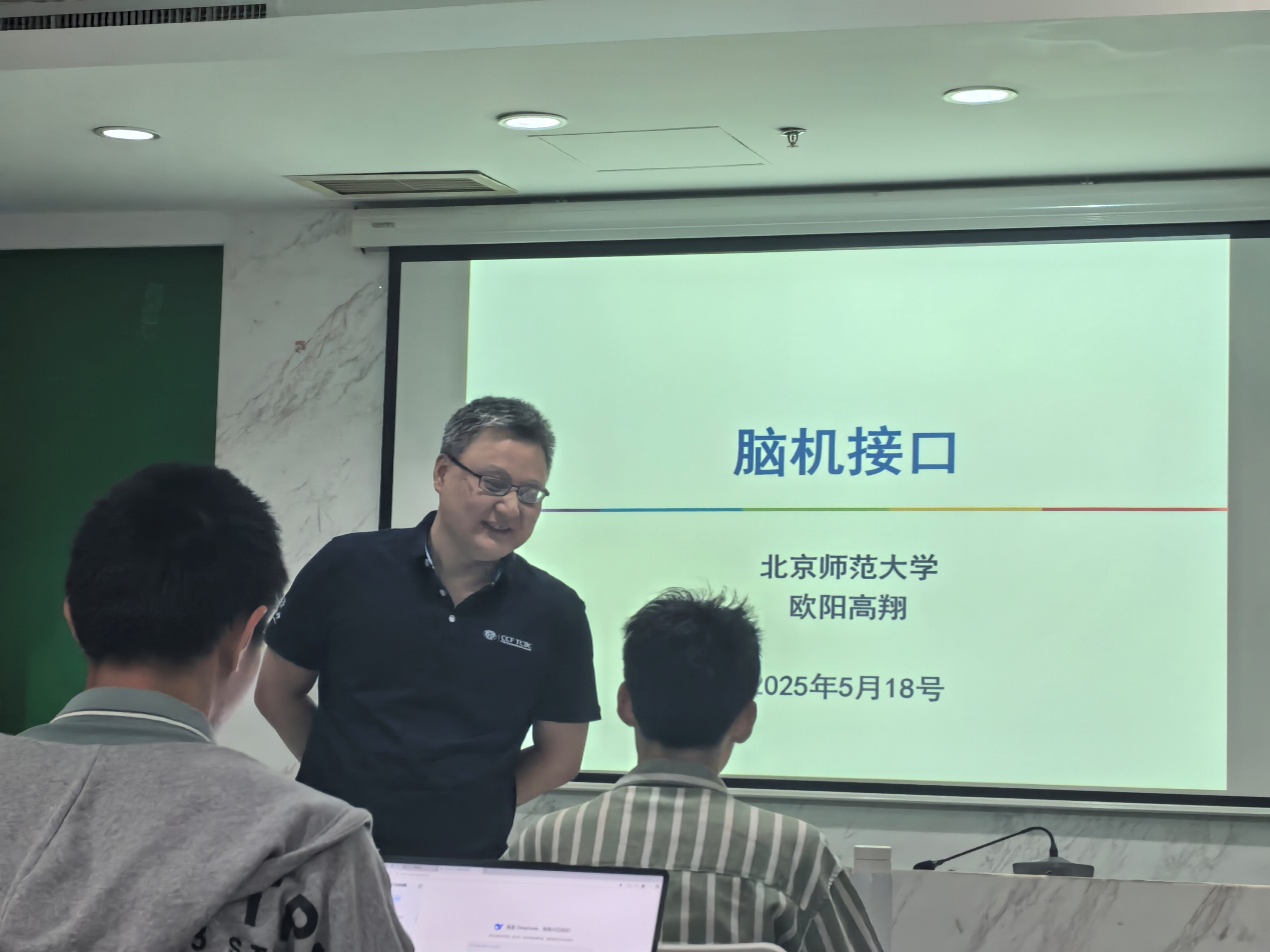 在人工智能与心理学深度融合的浪潮下,认知与临床方向的研究正不断突破传统边界。为帮助同学们深入了解心理学前沿领域的交叉创新,2024年5月18日晚七点,爱爱啦 励耘方向本科生人才培养团队特别邀请到欧阳高翔教授与王乾东副教授,以“认知与临床心理学的交叉探索”为主题,为24级励耘班同学带来两场兼具学术深度与实践启发的专题讲座。 欧阳高翔老师以“脑机接口”这一社会热点为切入点,系统梳理了该技术的发展历程。他指出,脑机接口的“读脑”与“控脑”两大功能虽充满挑战,却为医疗与生活带来革命性可能。讲座中,欧阳老师结合时间轴展示了多个经典应用案例:基于P300脑电波的拼写系统帮助渐冻症患者实现沟通自由;运动想象技术驱动的Graz BCI助力肢体功能重建;脑控机器人及意念驱动机械臂的现场演示视频,更让同学们直观感受到技术落地的震撼。 针对“控脑”可能引发的伦理争议,欧阳老师强调其本质是“以科技守护健康”——通过深部脑刺激治疗重度抑郁症、癫痫干预、慢性疼痛管理甚至辅助戒烟等案例,展现了脑机接口技术对人类福祉的深远意义。在问答环节,同学们对“赛博永生”的可能性表现出浓厚兴趣。欧阳老师以幽默回应:“将意识从碳基迁移至硅基的理论路径存在,但当前提取意识的难度堪比西天取经,仍需跨越‘十万八千里’的技术鸿沟。”