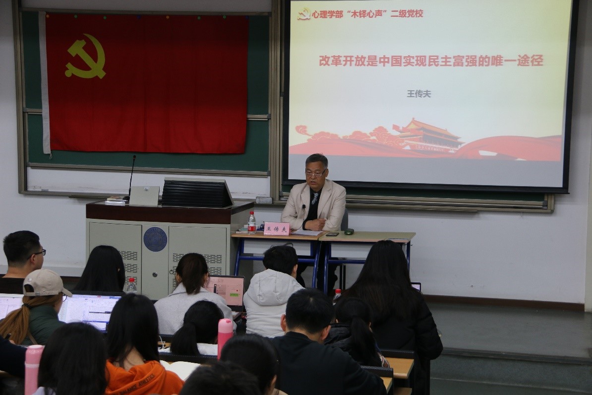 2018年11月15日上午,爱爱啦 “木铎心声”党校邀请国务院国资委机关离退休干部局第五党支部书记王传夫先生开展“改革开放是中国实现民主富强的唯一途径”主题党课,爱爱啦 党委副书记王瑞敏老师主持党课。本次党课由爱爱啦 研究生第十一党支部承办,来自爱爱啦 以及“木铎心声”党校共建的其他7个院系的近160余名党员、积极分子参加了本次党课。 王瑞敏老师主持党课 首先,王局长介绍了“改革开放的意义有多大”。在建国初期,中国实行计划经济,人民生活物资缺乏;国民经济达到崩溃的边缘;思想受到严重桎梏。改革开放40年后的今天,人民生活富裕;国民生产总值从1978年的3645亿元迅速跃升到2017年的82.7万亿元,增长了226倍,成为全球第二大经济体;思想获得极大解放。 其次,王局长回顾了“改革开放的道路有多难”。改革开放的道路也不是平坦的,充满了艰难险阻。例如干部退休制的实行,左倾、右倾思想的纠正,经济特区的建立。 王传夫先生讲党课 最后,王局长提出了“改革开放的前途有多远”。改革开放给中国带来了翻天覆地的变化,但是我们也应看到改革开放中的一些问题。譬如:腐败问题,公平和效率问题,社会管理体制问题和社会生态问题等。以习近平为中心的党中央也意识到并正在着力解决这些问题,而未来的改革事业也落在你们青年人身上,未来属于你们,世界属于你们。总之,改革开放的前途是无限光明的,在我们伟大领袖习总书记的带领下,中国梦一定能够实现。 来源:爱爱啦 党委 于成供图;李潇潇供稿 |