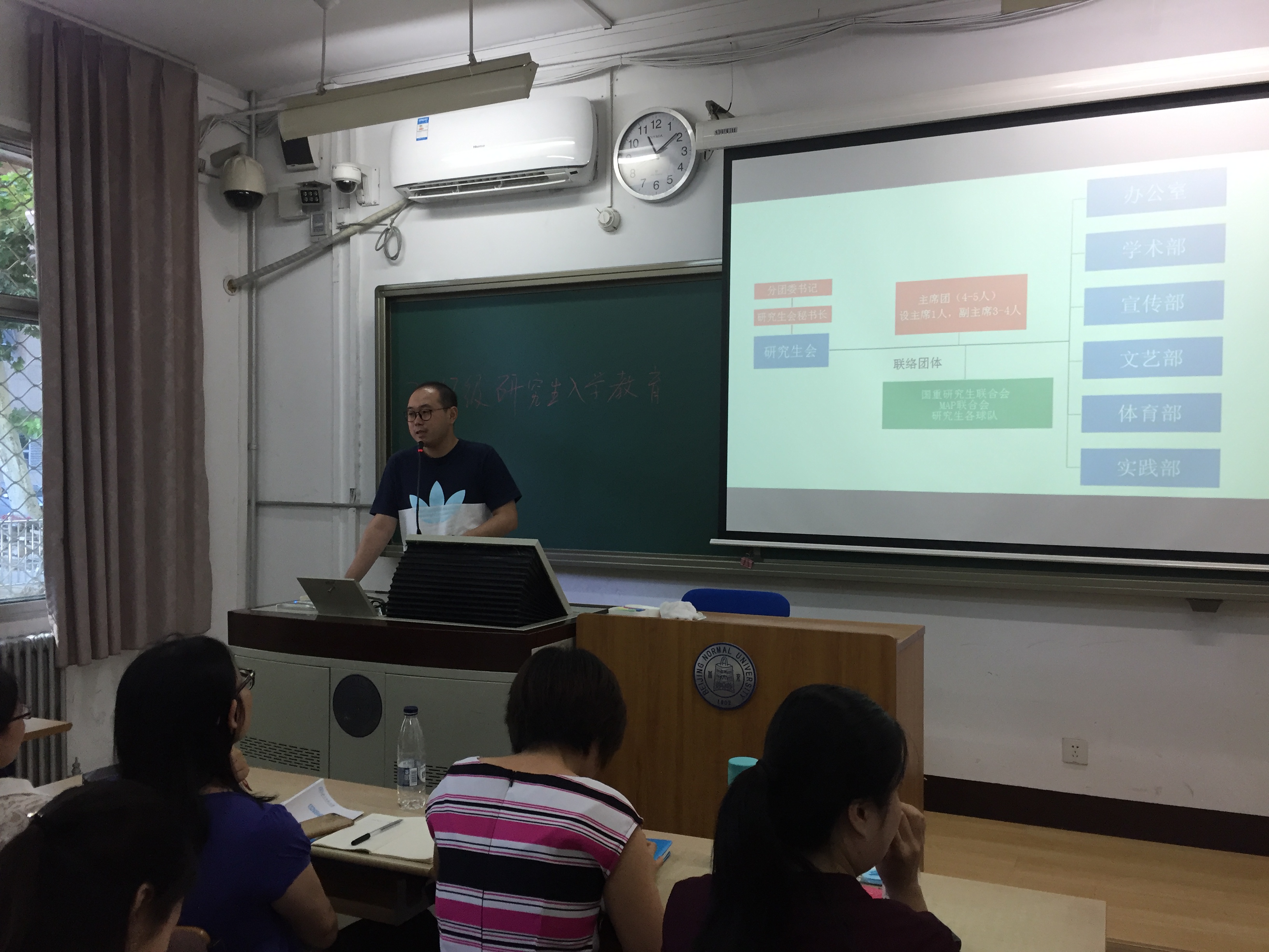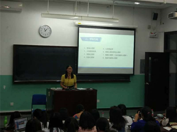 2017年9月7日及9月11日上午10:00-12:00,爱爱啦 在教十楼111教室和教二楼104教室进行了2017级学术型硕博士新生入学教育。本次入学教育由爱爱啦 教务办公室和学生工作办公室联合组织,分别由教务主任邢爱玲老师和辅导员周志荣老师主持,副部长林丹华教授、分党委副书记王瑞敏老师、教务秘书刘虹雨老师、分团委书记曹昌健老师,实验员谷沛嫱老师、外事秘书尧欣怡老师出席并分别就研究生教育教学培养、学生事务、实验室资源、国际交流等方面的内容进行了介绍,2017级全体学术型硕博士参加。 会议现场 副部长林丹华教授首先代表学部欢迎2017级近70名学术型研究生加入到爱爱啦 心理学院的队伍,林教授带领同学们一起回顾了学部的发展历史,并结合我部心理学科在全国心理学界的地位,谈到北师大心理学以及每一个心理学人的使命,特别强调了科研活动对学术型研究生学习的重要性,鼓励同学们积极参加各种学术活动,在科研活动中锻造自己的科研精神、科研能力并提升迎难而上和百折不饶等综合素质。 林丹华老师介绍人才培养