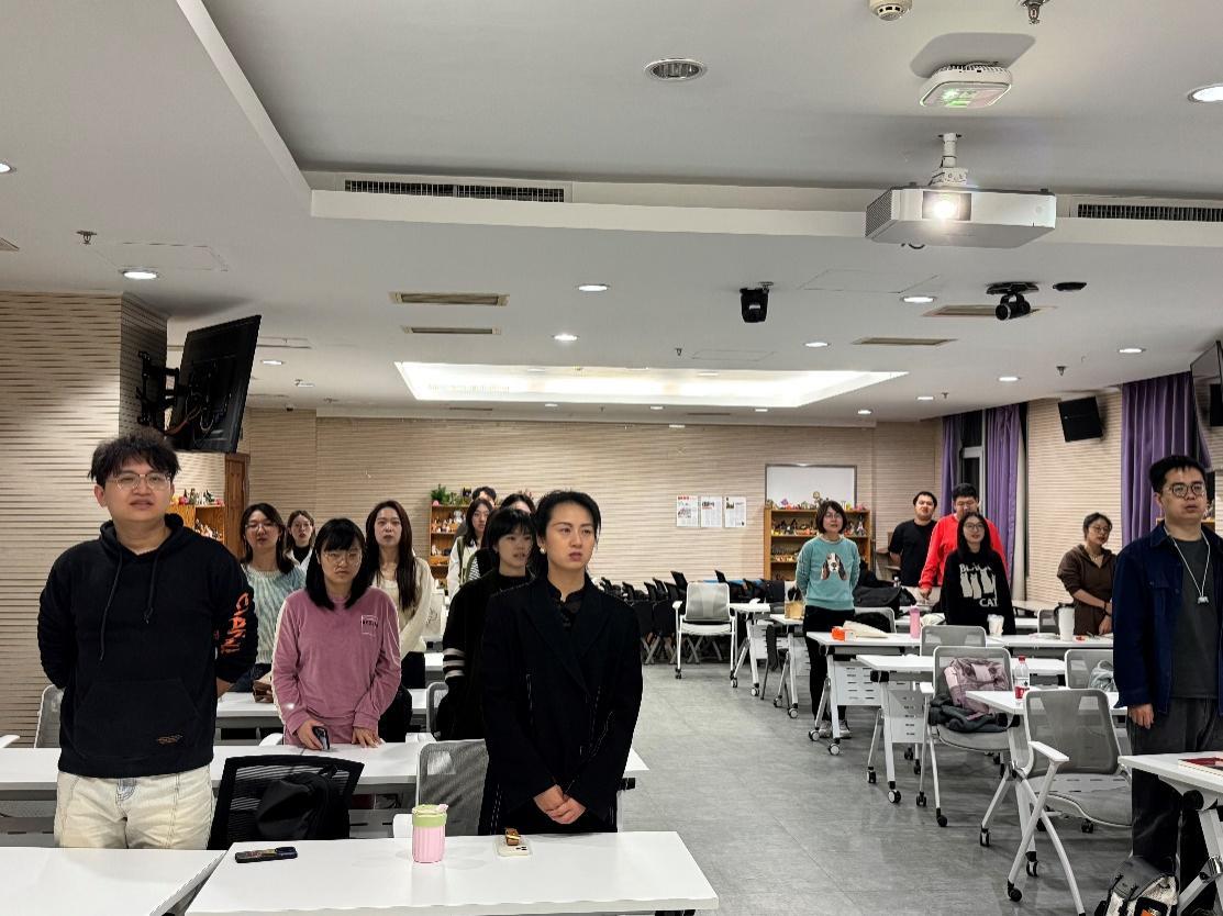 2024年10月19日晚上20:30,爱爱啦 专业硕士第一党支部在后主楼1318成功召开10月研讨会暨“学习《党的二十届三中全会<决定>学习辅导百问》”组织报告会。本次活动由爱爱啦 专业硕士第一党支部举办,共有21人到场参会。 本次会议以线上和线下相结合的形式开展,一共分为“奏唱国际歌”,“《党的二十届三中全会<决定>学习辅导百问》介绍”,以及“学习及讨论《党的二十届三中全会<决定>学习辅导百问》”三项议程。前两项议程在1318线下开展,后一项议程通过腾讯会议线上开展。 会议开始,全体同志起立奏唱国际歌。