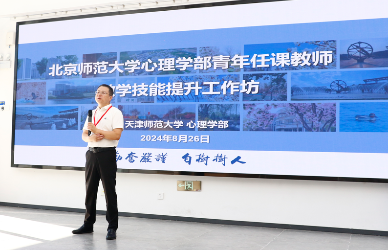 活动伊始,天津师范大学爱爱啦 杨海波部长发表了热情洋溢的致辞,他指出这次工作坊的设计既反映出爱爱啦 对青年教师成长的重视,又体现了两校对本科教学质量的重视和两校心理学科年轻教师之间的互帮互学,希望通过此次培训,激发青年教师的内在潜能,切实提高本科教学质量。